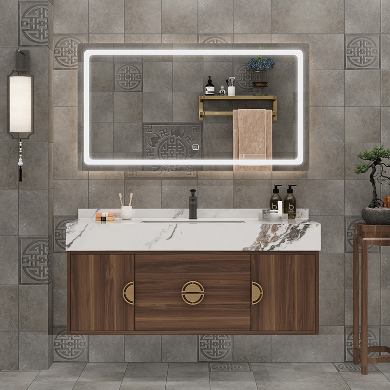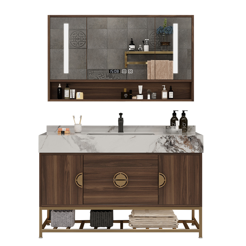 卫生间现代简约落地新中式亮光岩板浴室柜洗手脸盆柜Y组合洗漱台