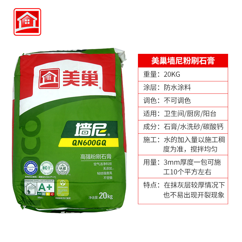 美巢墙尼高强粉刷石膏墙面修补找平剂底层QN600GQ内墙缝石膏嵌缝