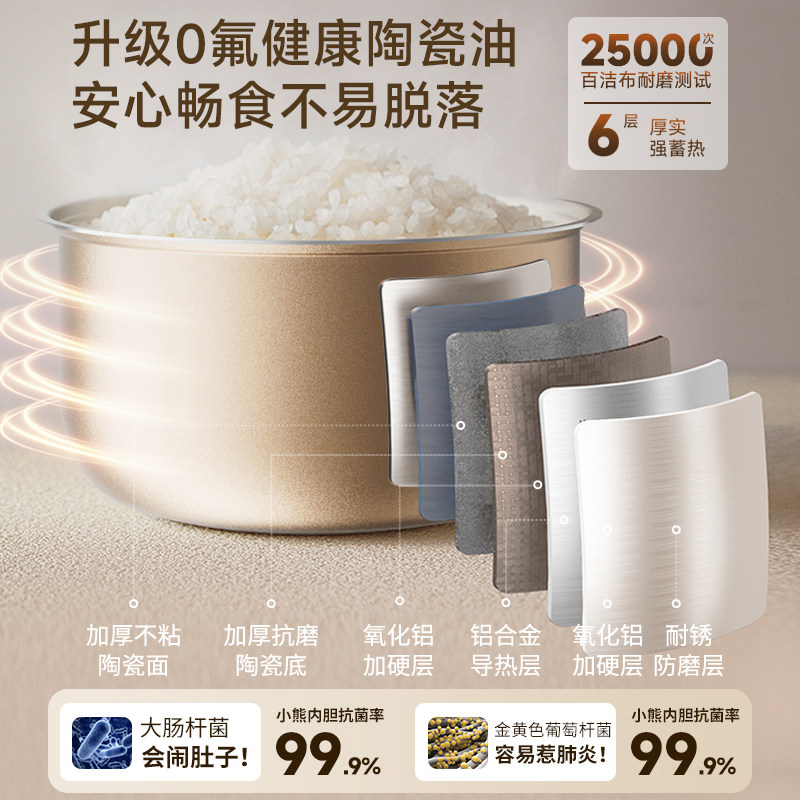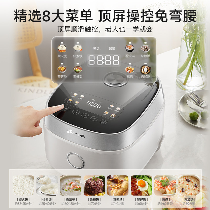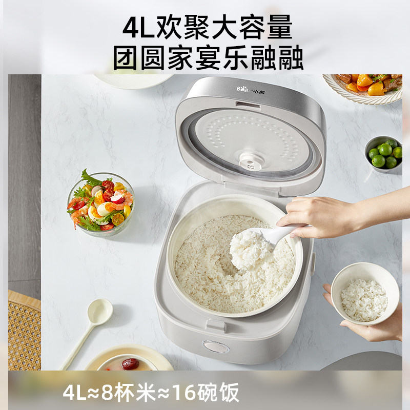 小熊电饭煲锅家用4升大容量多功能智能预约3到4到5人微压力烹饪机
