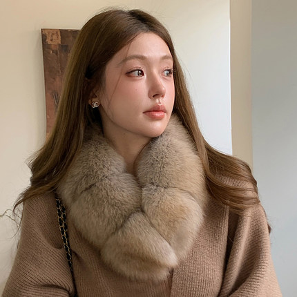 真狐狸毛反面獭兔毛皮草围巾显瘦双面整皮毛毛围脖冬季保暖真毛领