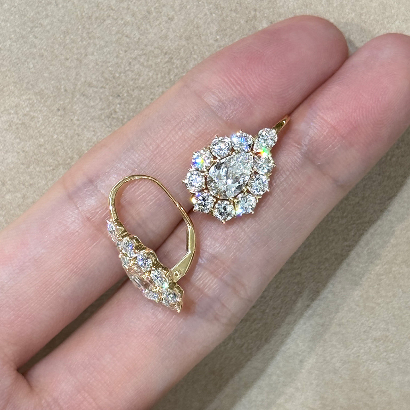 大水滴耳环 18K金培育钻石耳环彩金耳扣18k金培育钻耳饰高级感