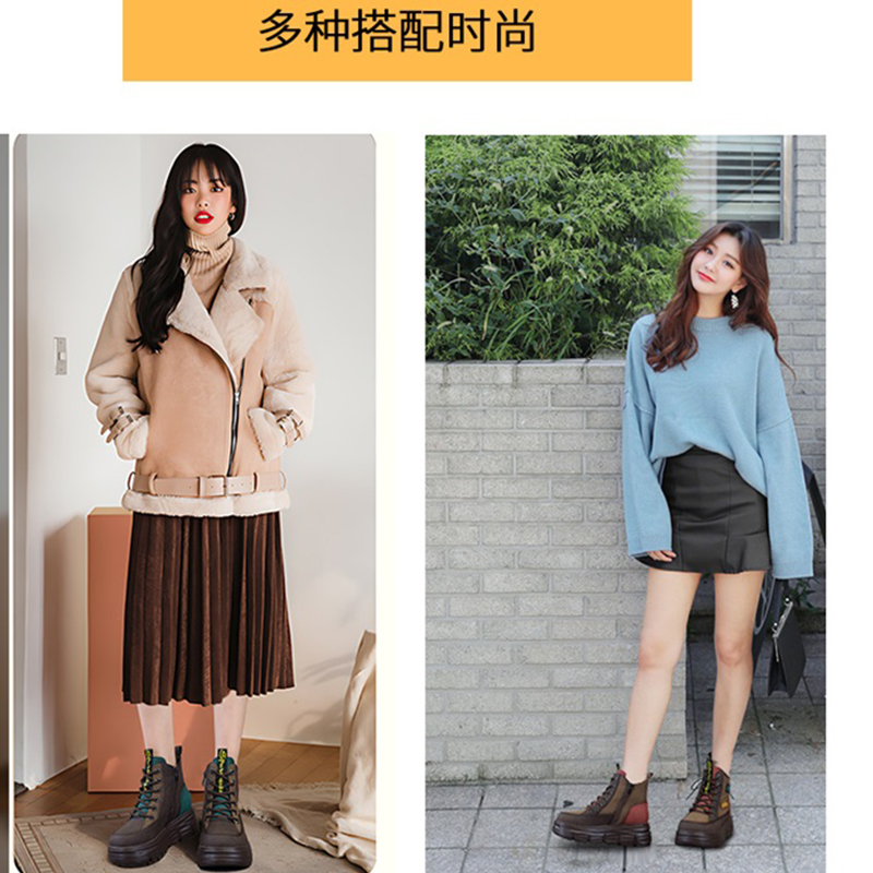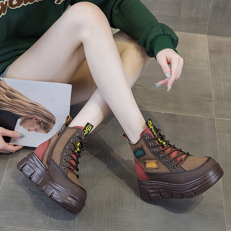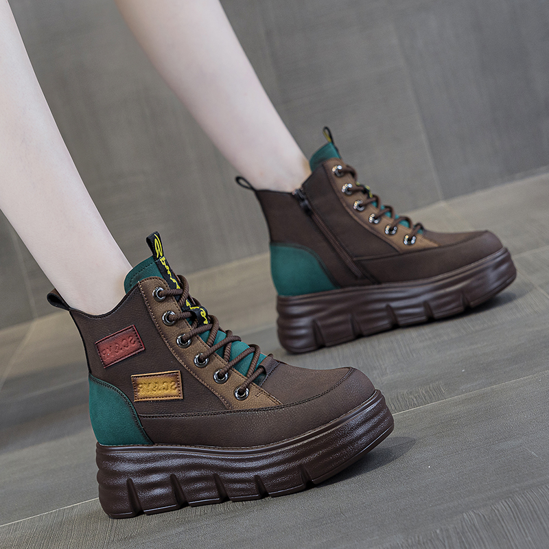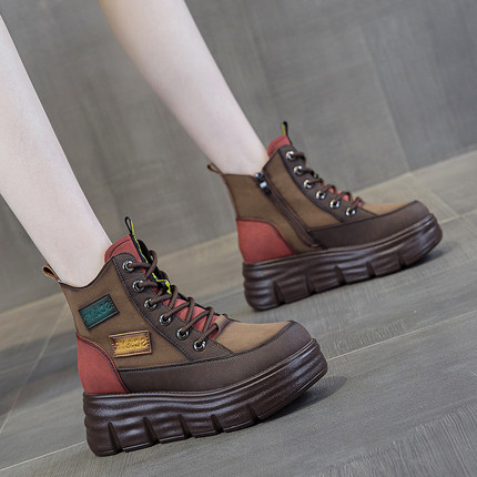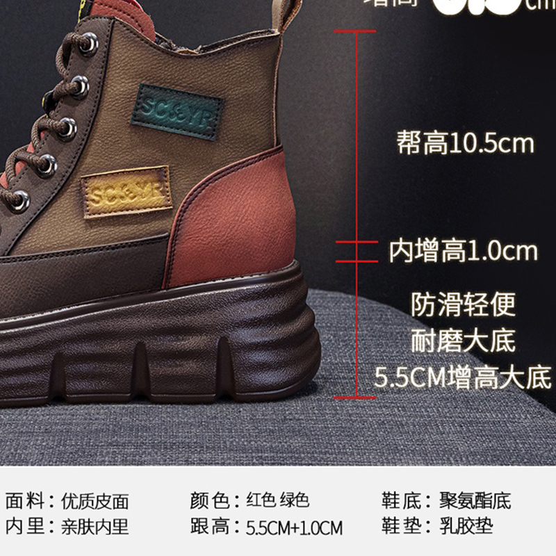 红色厚底皮面马丁靴女款2025春秋新真皮爆款女士复古高帮短靴软底