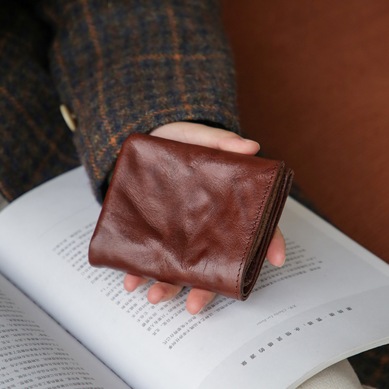 复古真皮女短款钱包手抓纹头层牛皮皱褶驾驶证银行卡便携收纳卡包