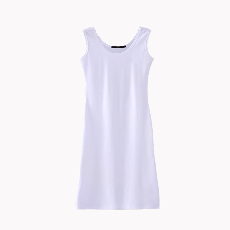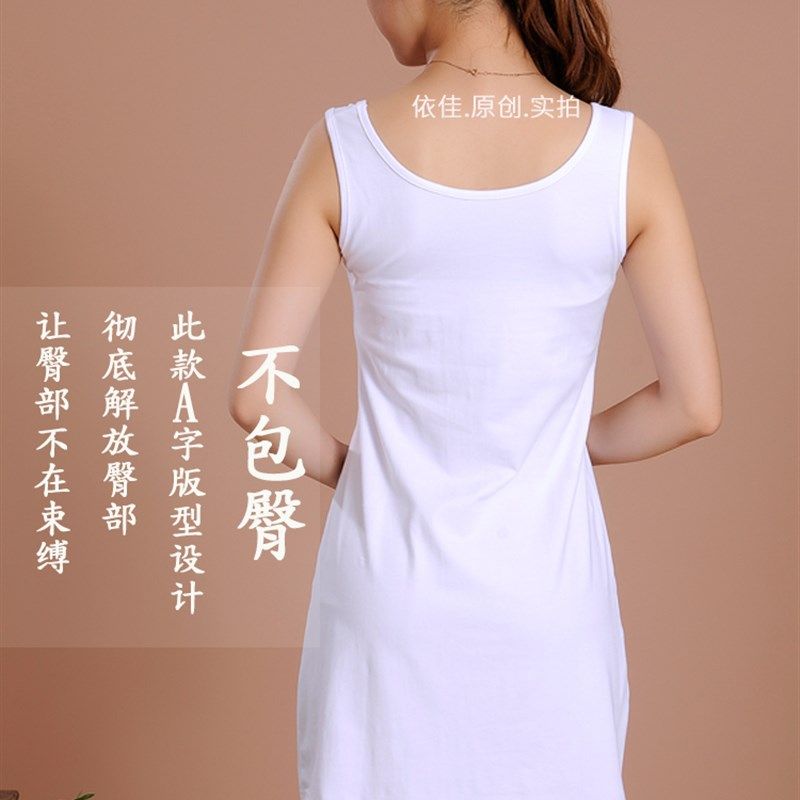 纯棉中长款无袖白t背心女打底裙内搭衬裙卫衣叠穿搭配露白边秋冬