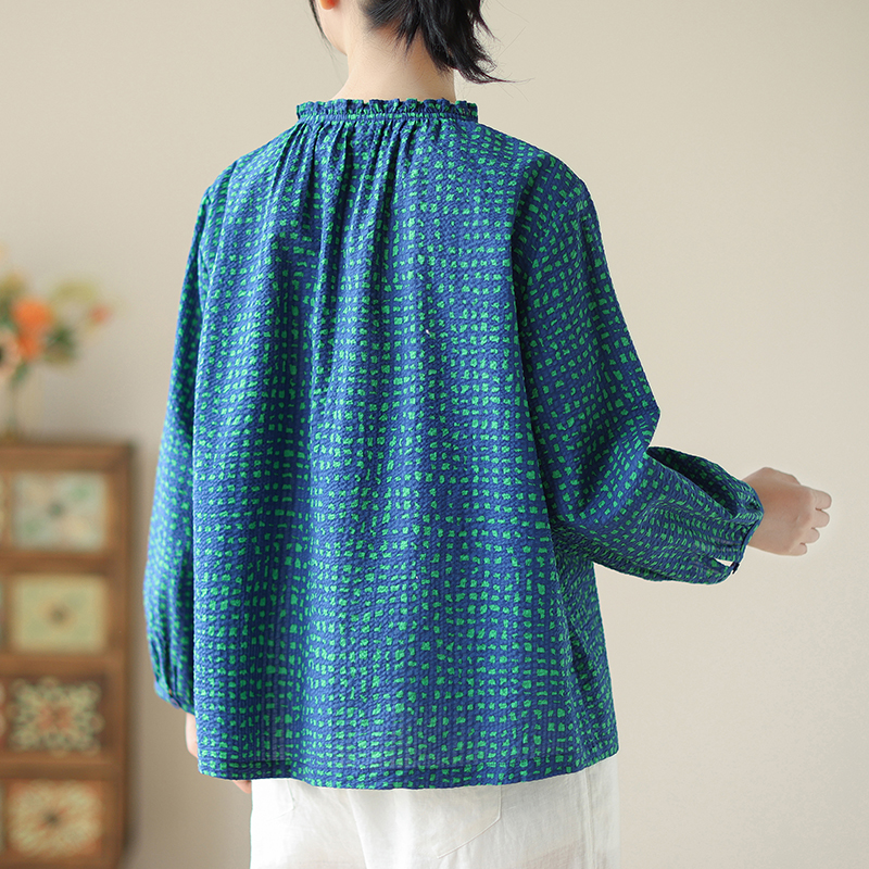 设计感蓝绿格子文艺衬衫女春秋宽松胖mm显瘦洋气大码开衫长袖上衣