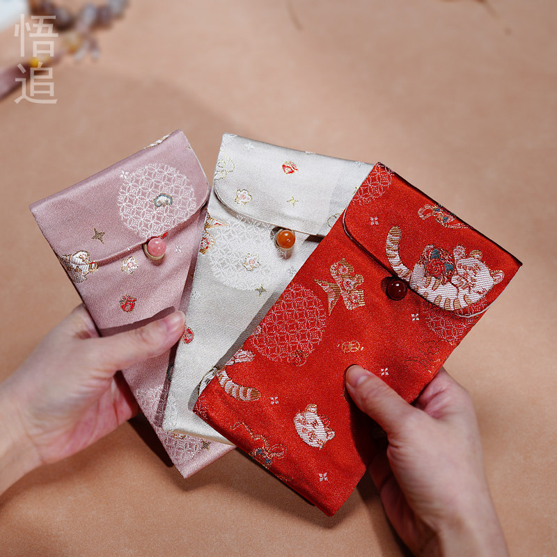 悟追织锦缎手机布袋子加厚手机保护套首饰收纳竖款丝绸布艺零钱包