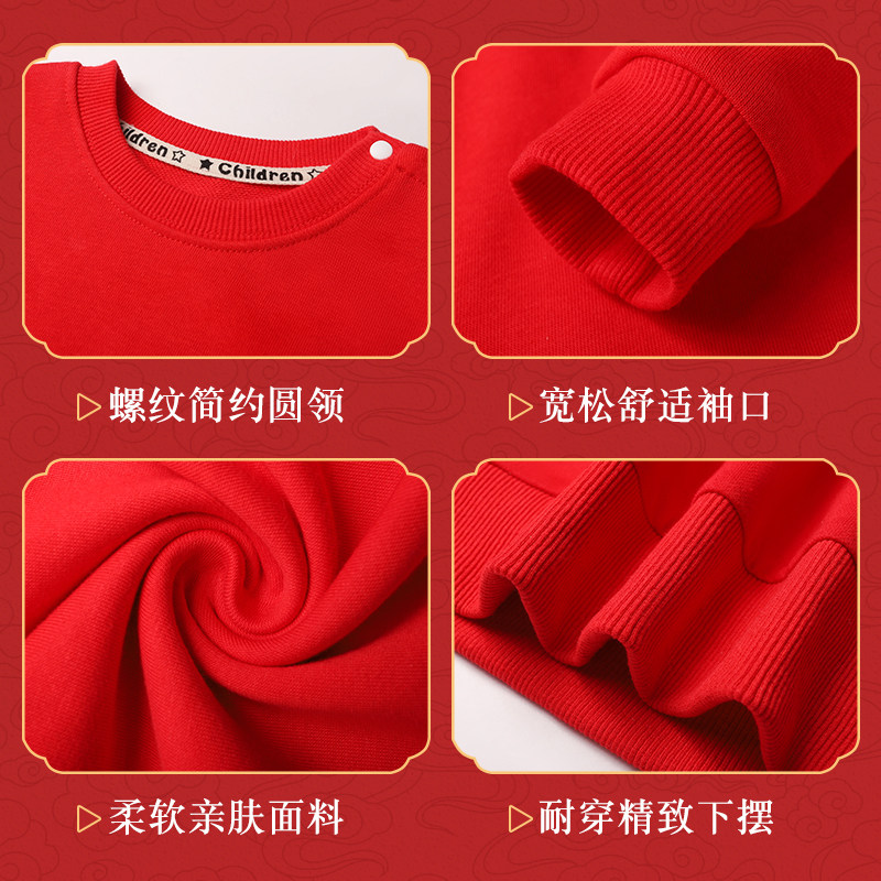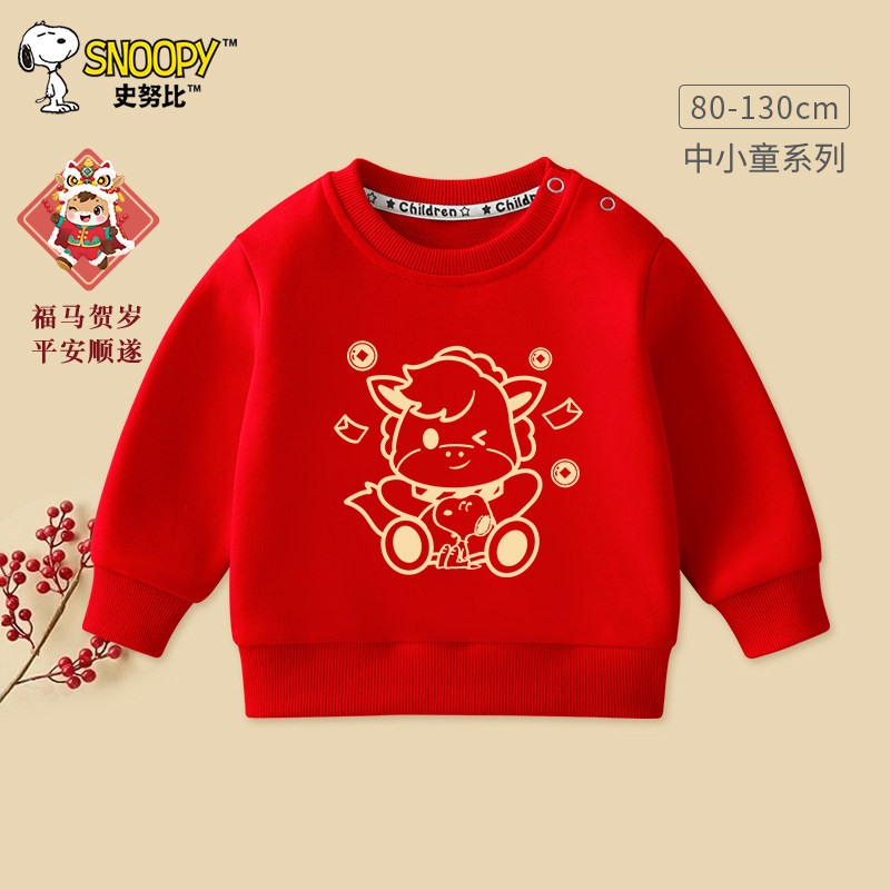史努比儿童卫衣秋冬款宝宝2026红色新年圆领周岁礼服男童加绒上衣