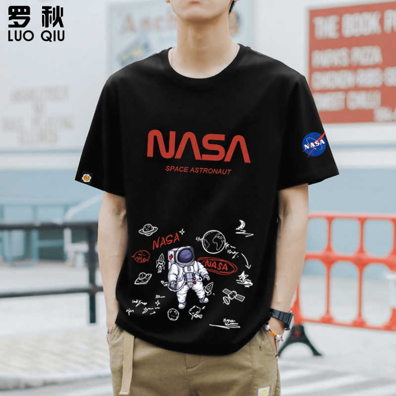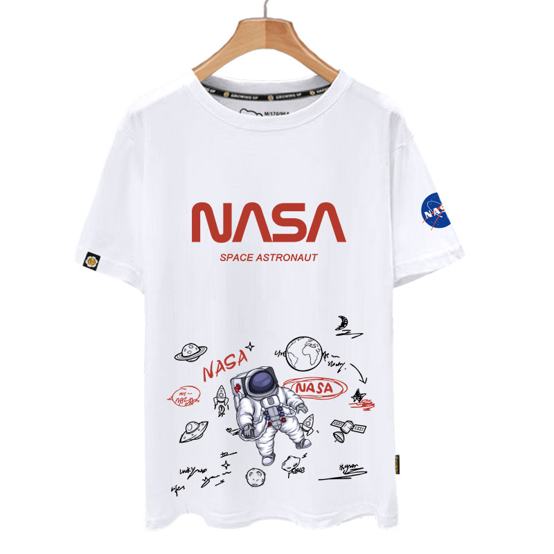 NASA宇航员联名太空人涂鸦趣味纯棉短袖T恤衫男女半袖休闲上衣服