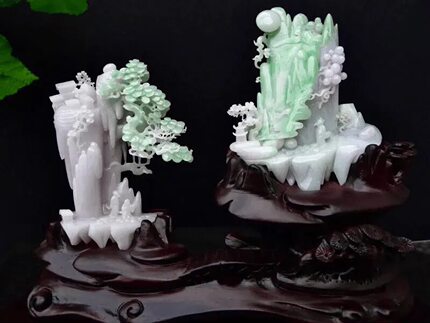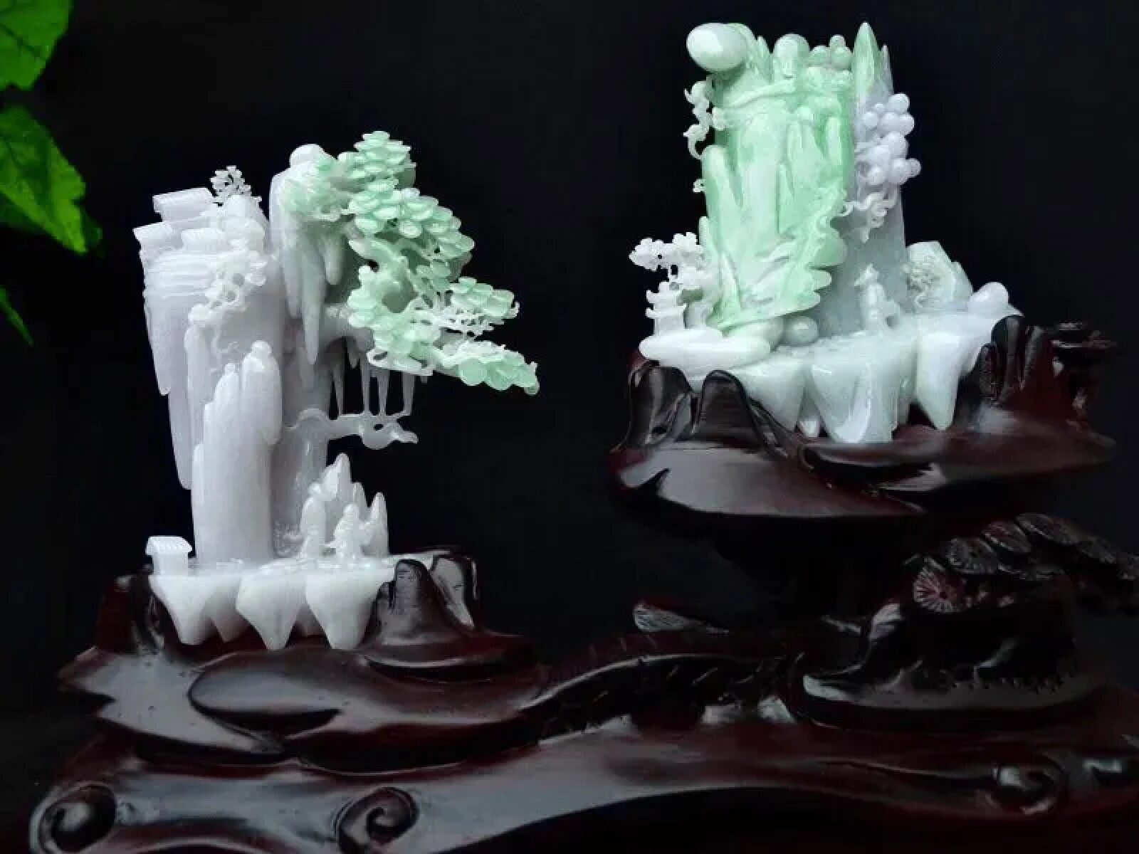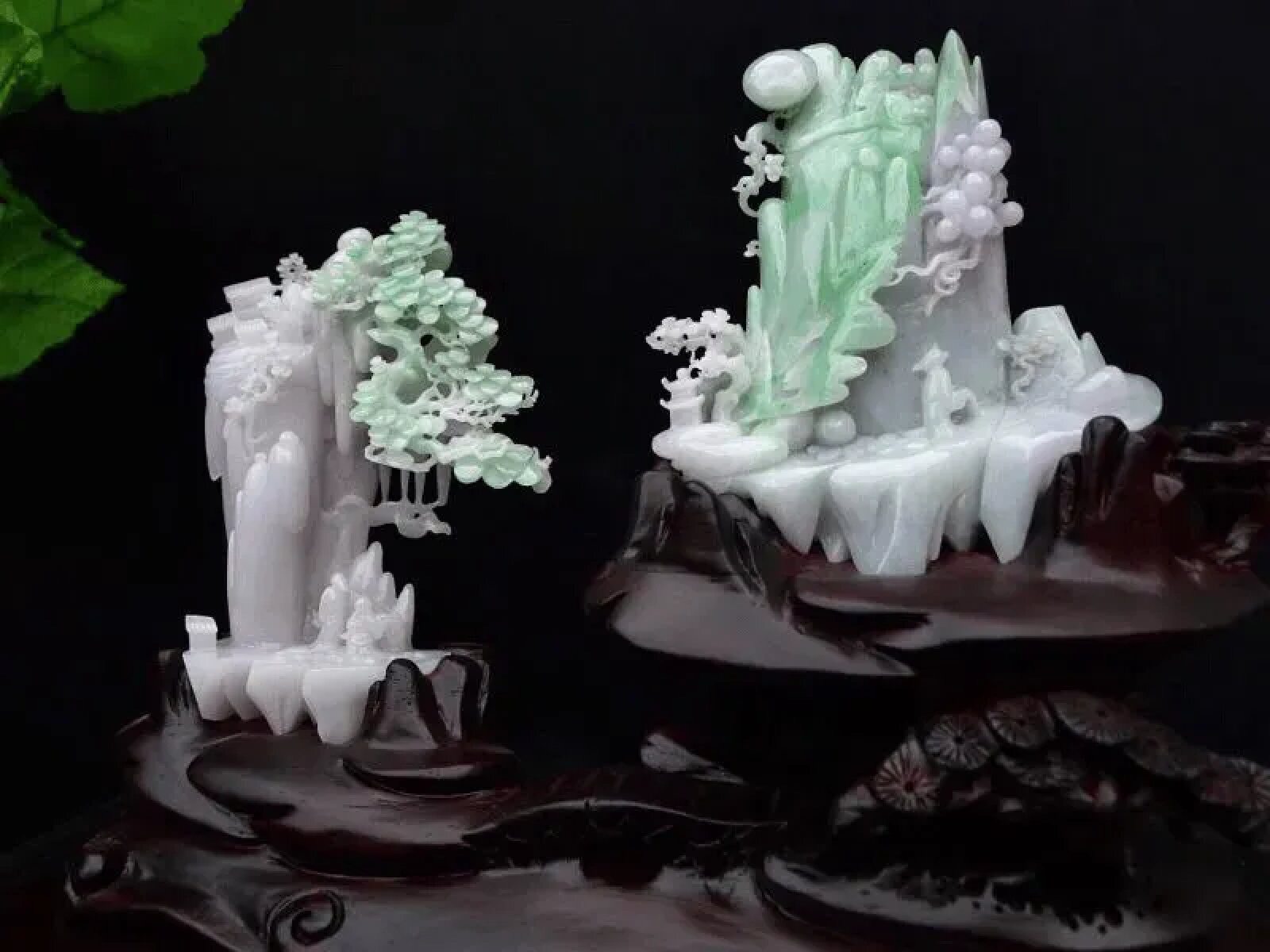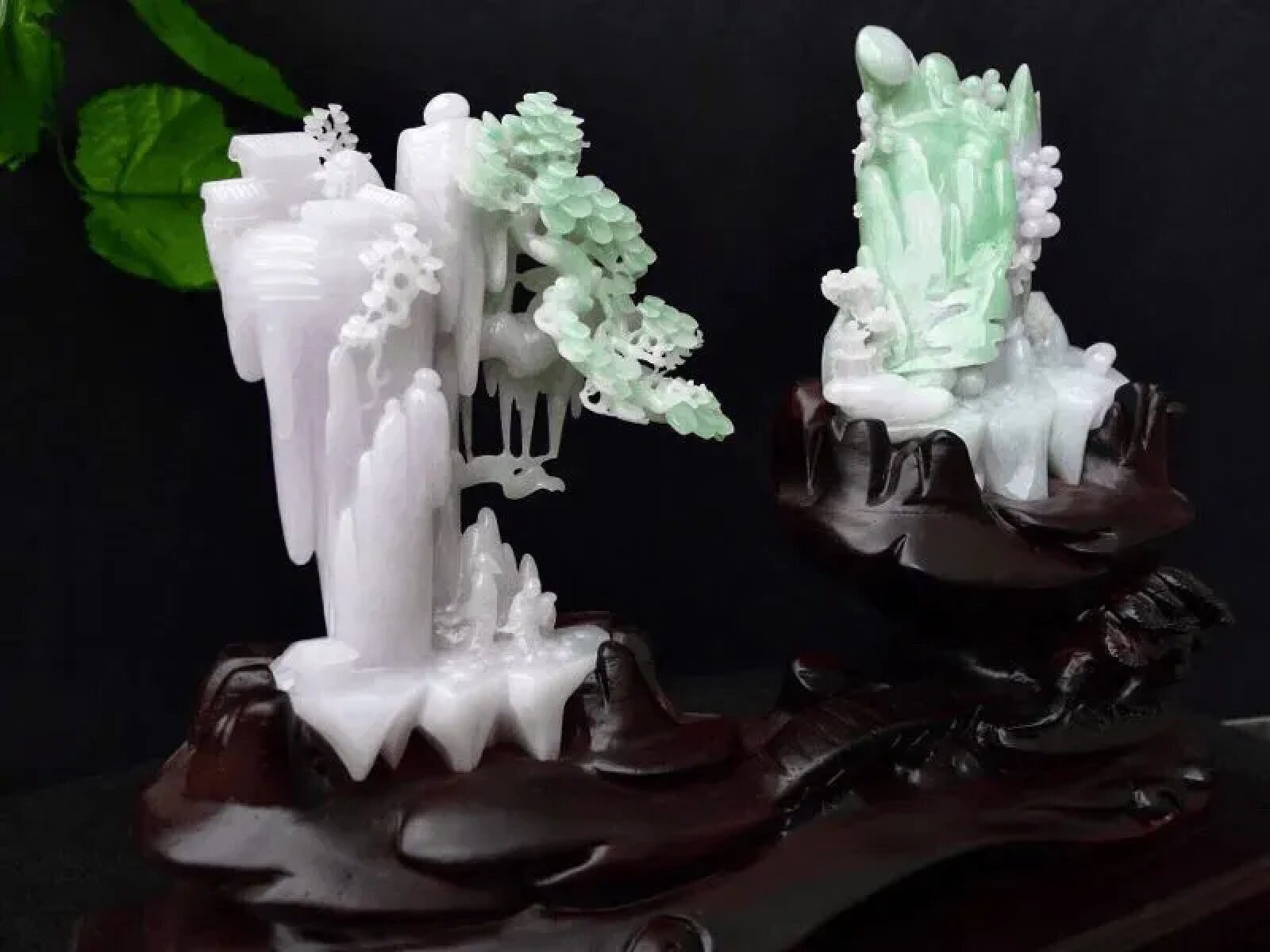 缅甸翡翠山水风景摆件精雕蓬莱献瑞 精品客厅招财纳福0.97公斤