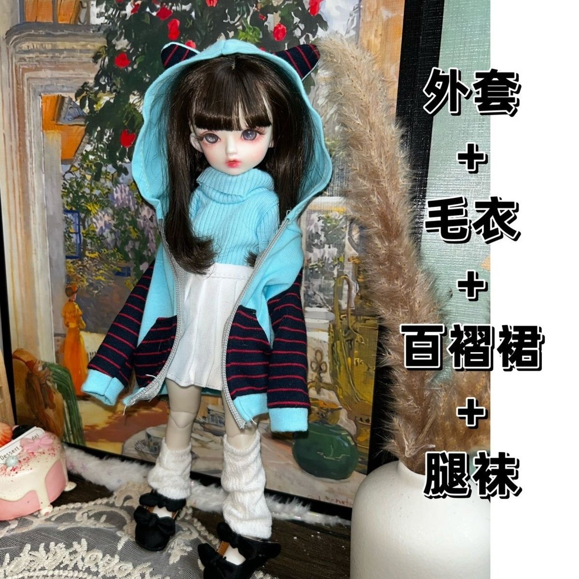【四分连帽套装】bjd4分娃衣外套上衣百褶裙毛衣4/1娃娃衣服46cm