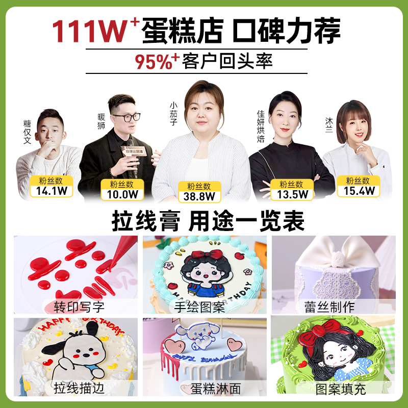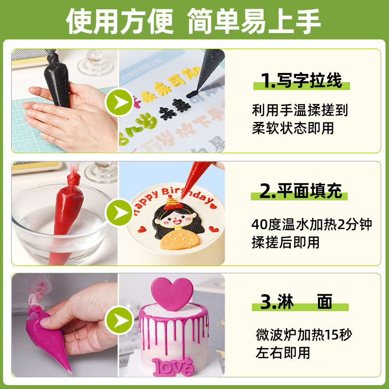 FC法采拉线膏烘培蛋糕装饰写字巧克力奶油霜法彩裱花烘焙专用翻糖