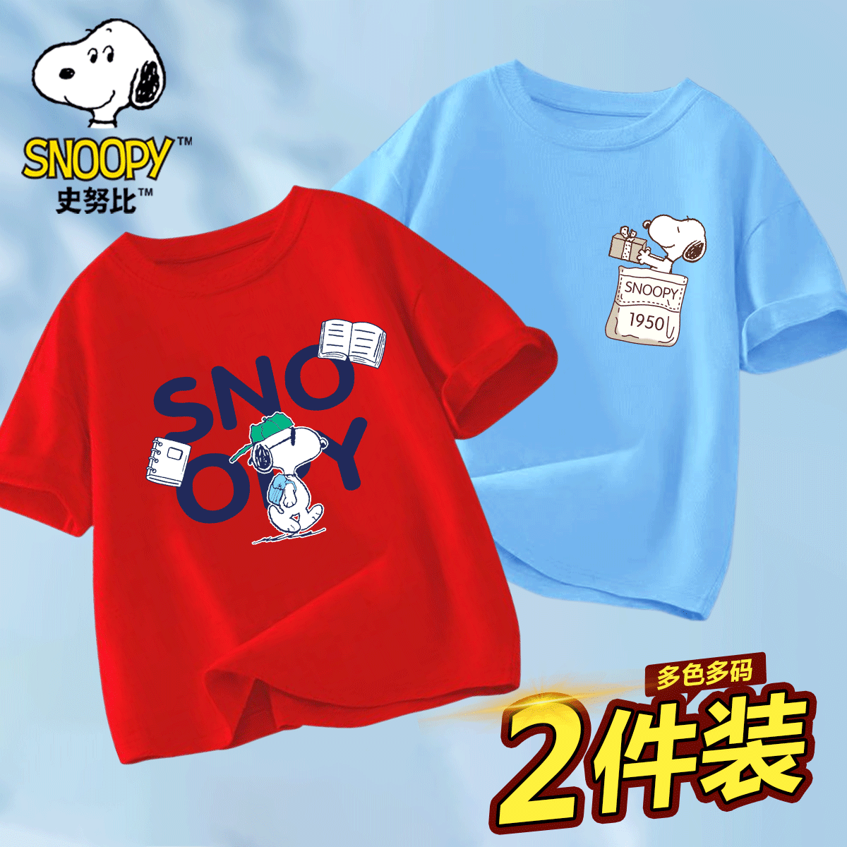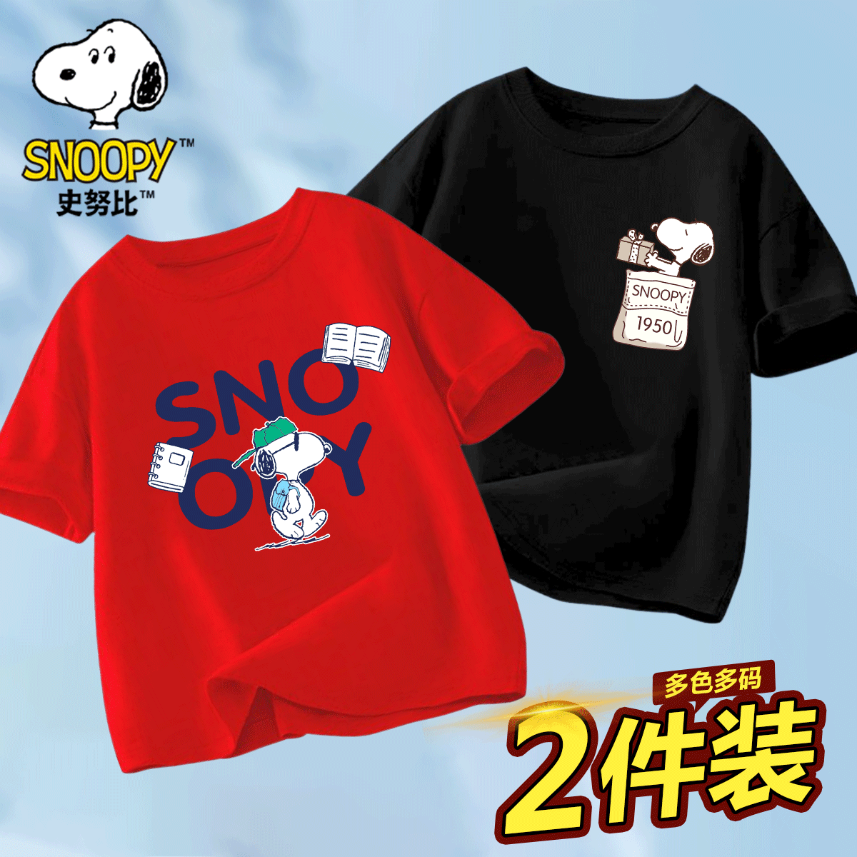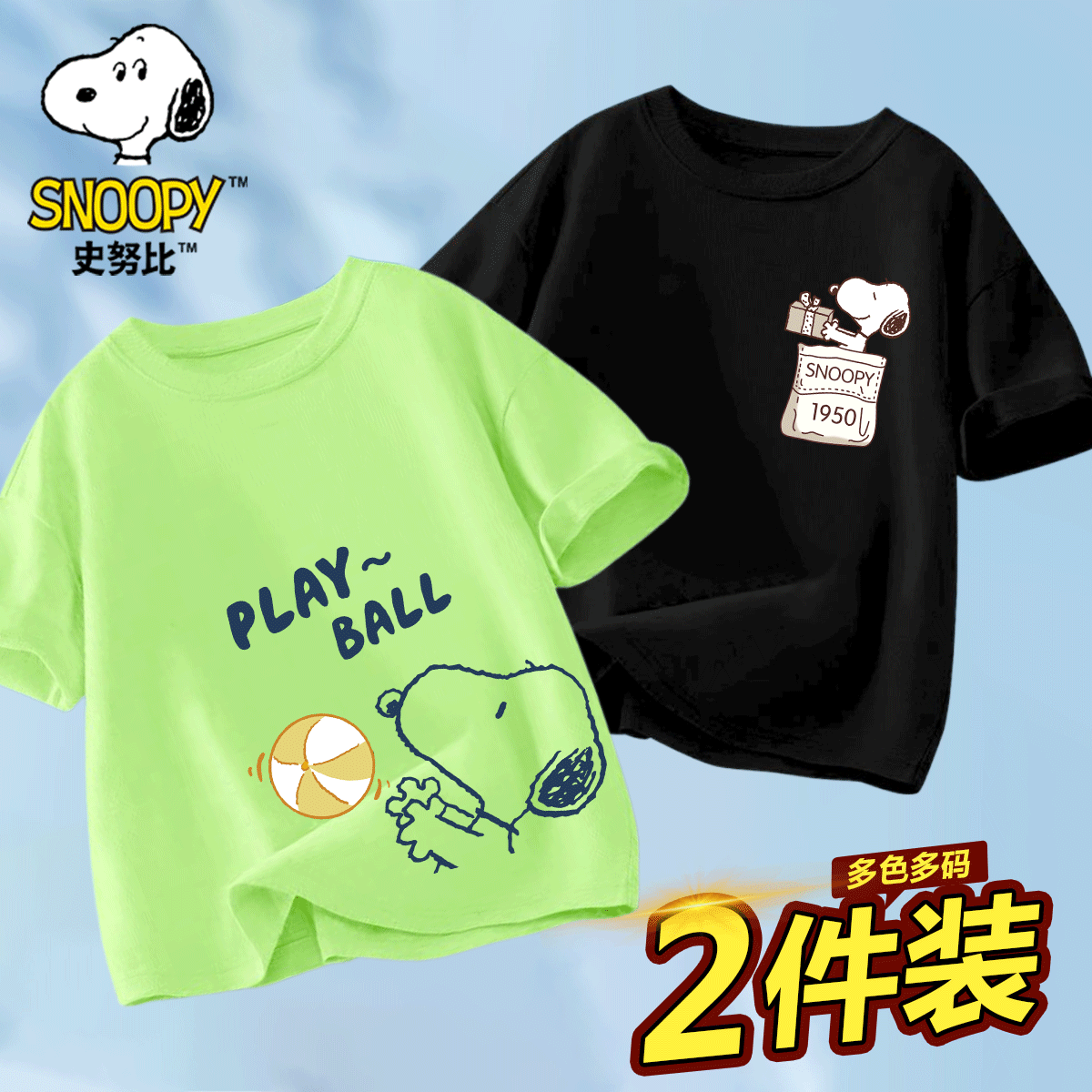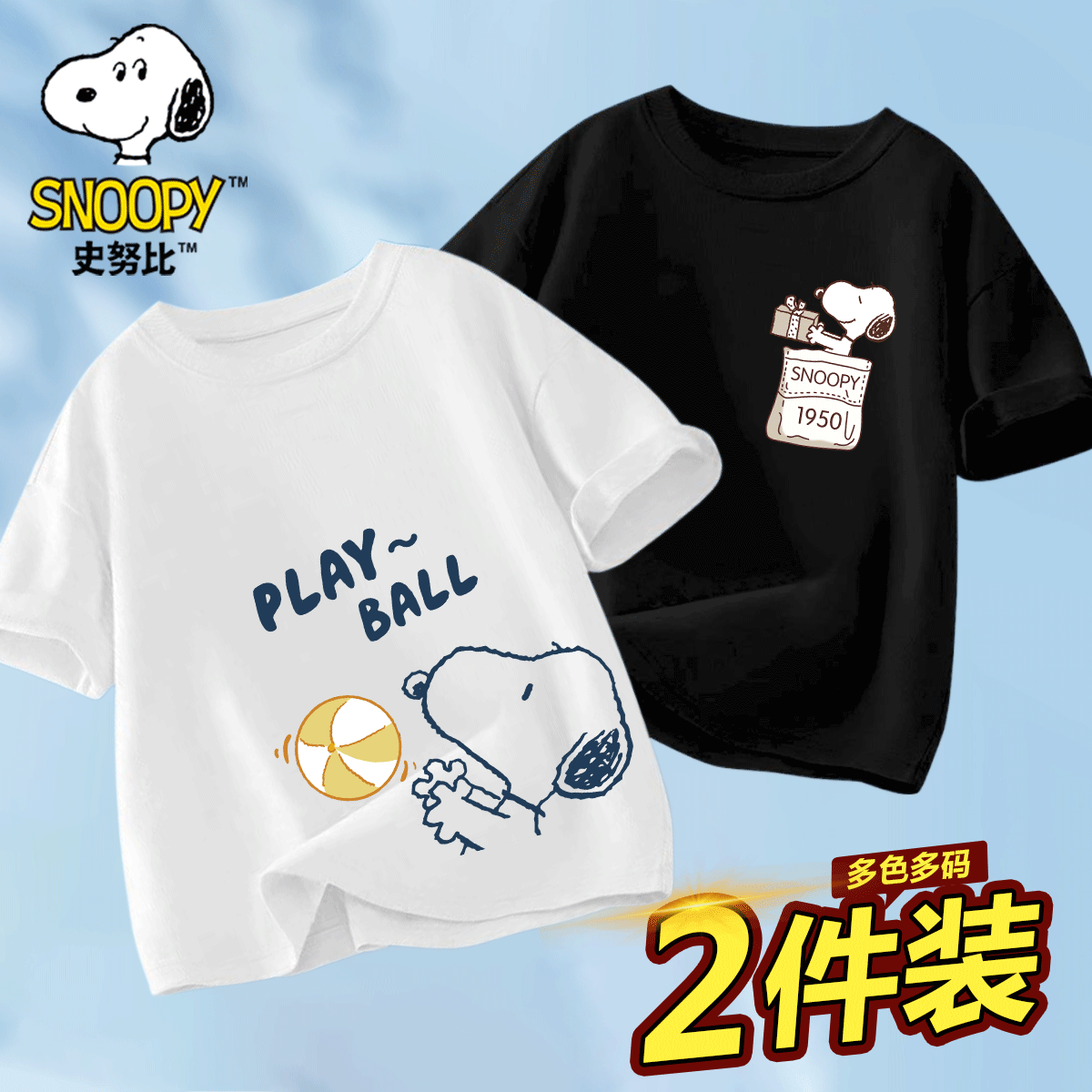 史努比男童短袖t恤2025新款夏季纯棉儿童衣服男孩半袖大童装运动