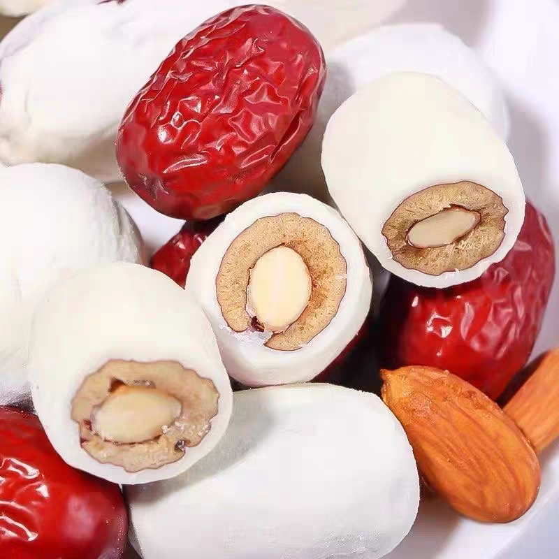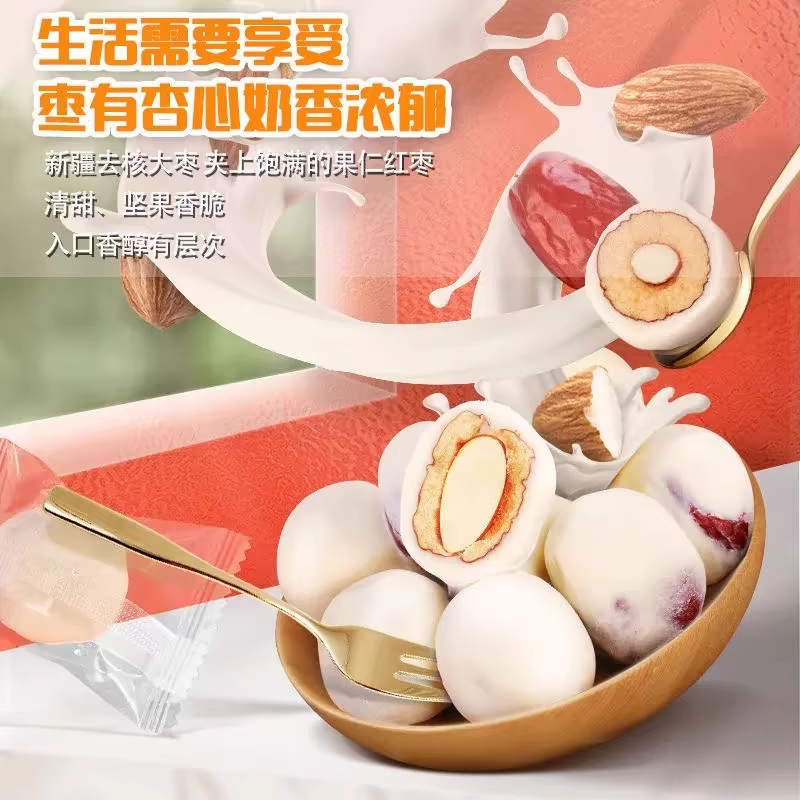 年货网红奶枣巴旦木夹心无核奶酪枣杏仁新疆过年零食特产休闲小吃