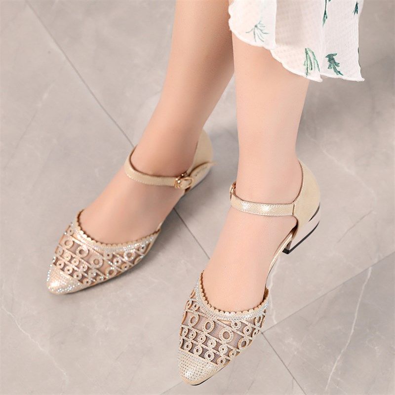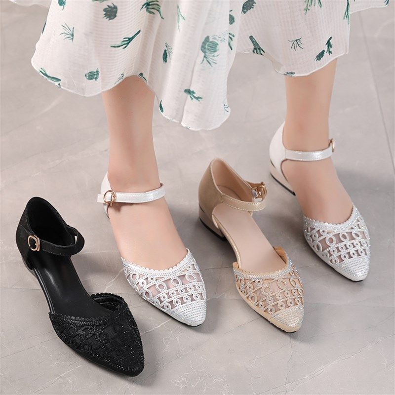 网纱凉鞋女式31 32 33特小码平底粗跟软底低跟小脚网面女鞋大码43