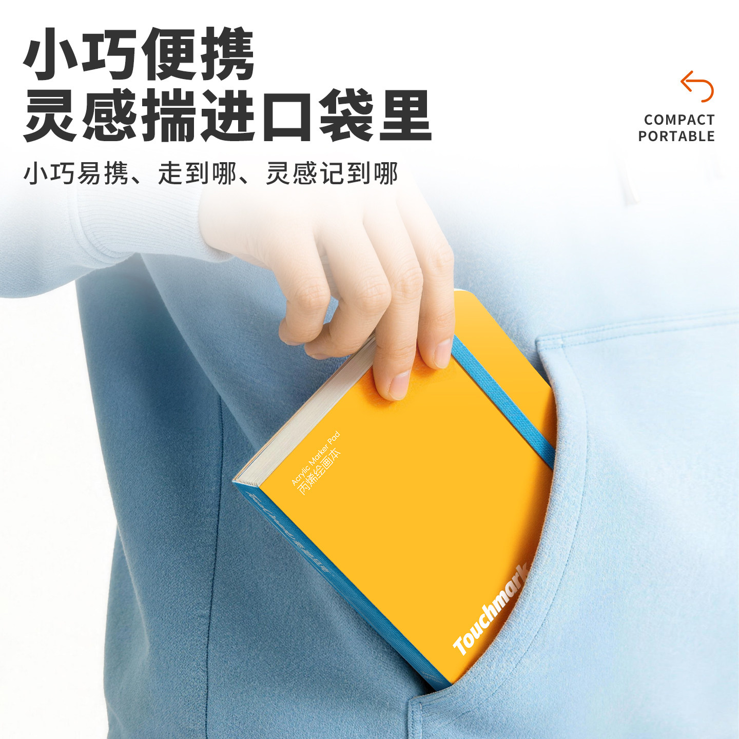 Touchmark便携口袋水彩本丙烯马克笔绘画本300g加厚水彩纸半棉迷你小方本美术生空白翻翻画本旅行写生速写本