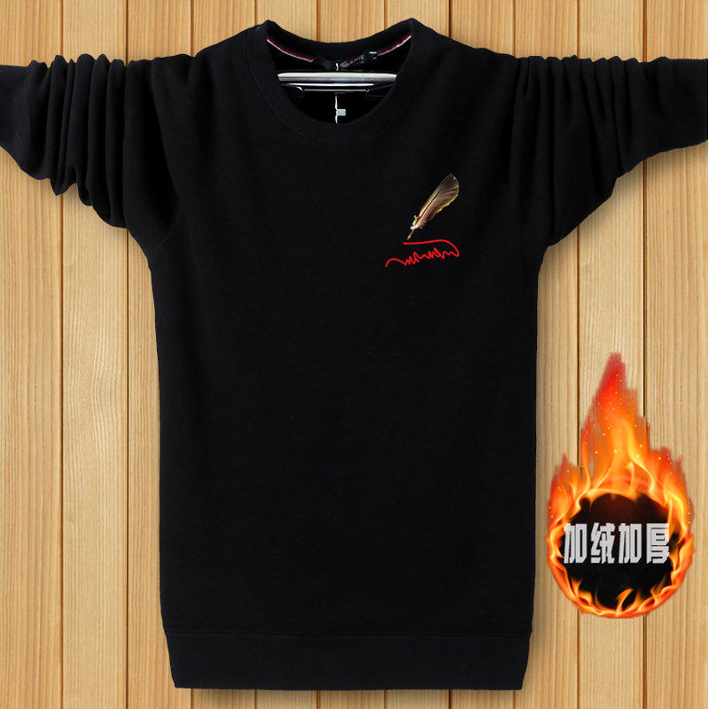 秋冬男士纯棉保暖长袖T恤加绒加厚宽松大码休闲卫衣爸爸装打底衫
