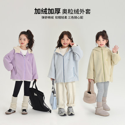 布丁哈鲁童装冬装女童洋气2025秋季新款儿童加绒加厚保暖连帽外套