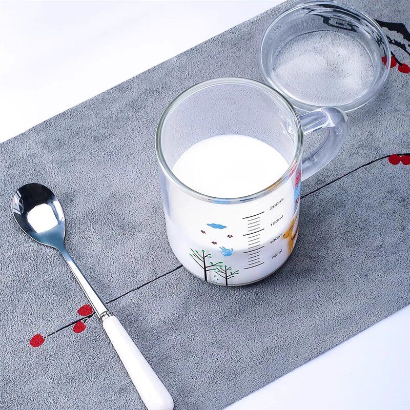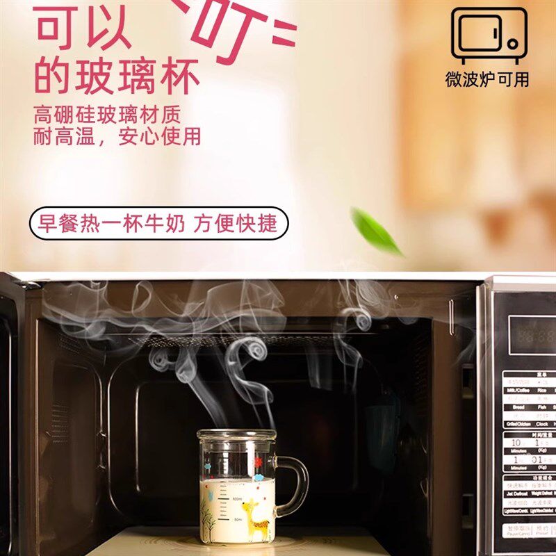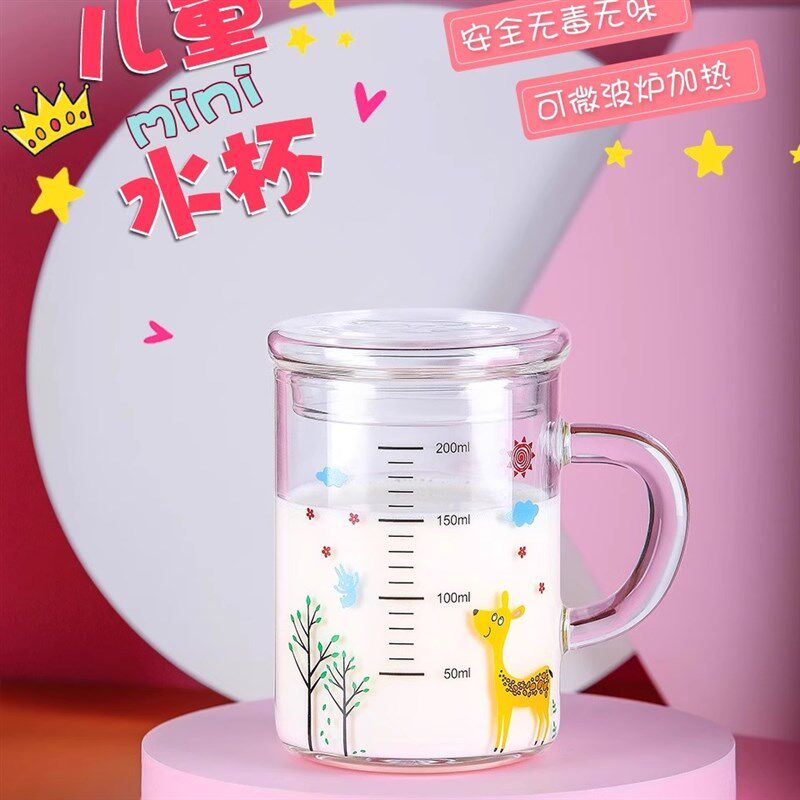 牛奶杯儿童水杯家用宝宝小孩喝水杯子可J微波耐热带刻度加厚玻璃