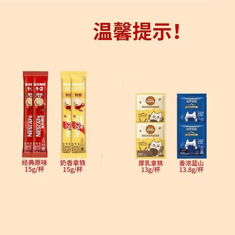 雀巢咖啡1+2原味奶香拿铁蓝山袋装三合一速溶咖啡粉提神办公熬夜