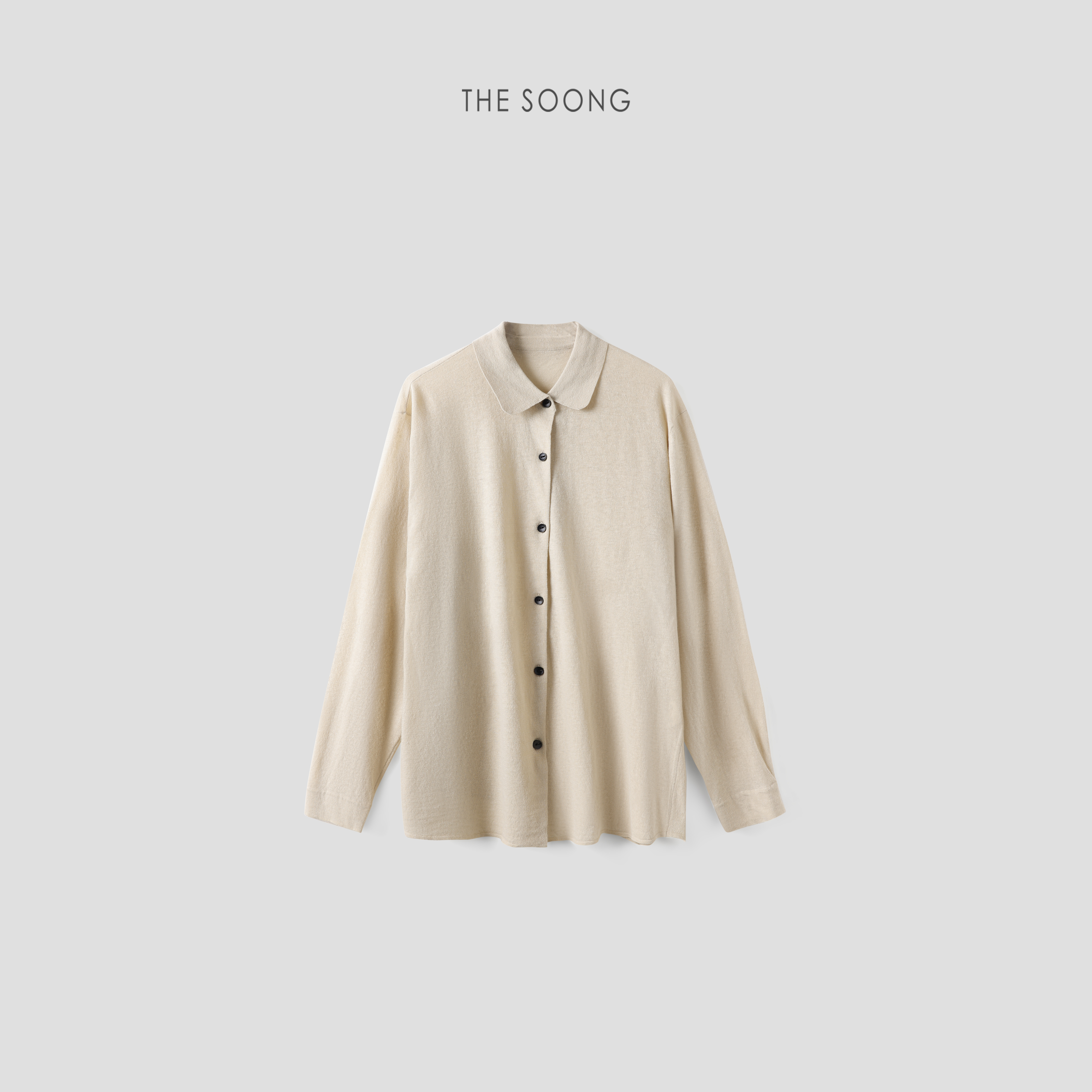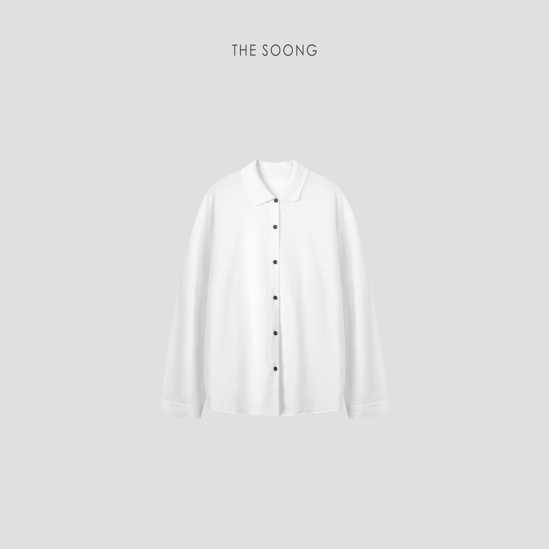 THESOONG/高知典藏 舒适原麻叠穿高品质白色polo打底衬衫女士上衣
