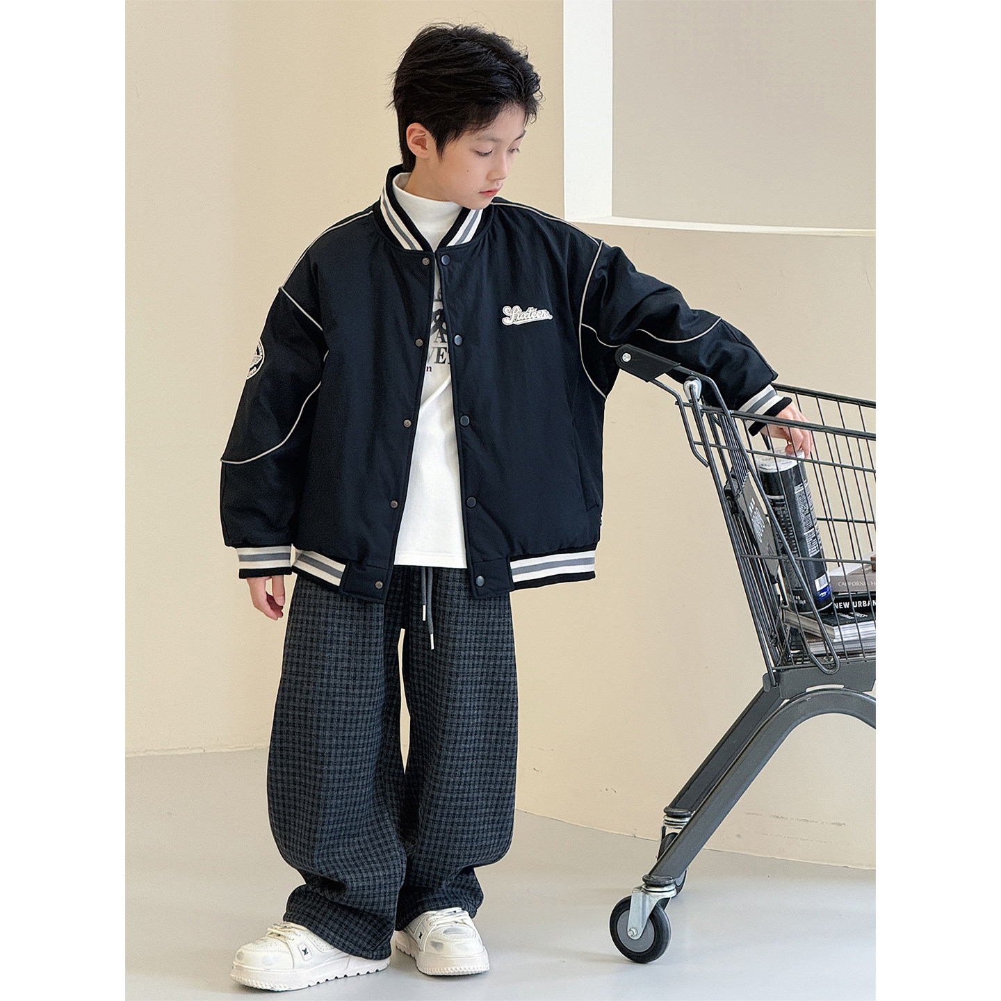 男童外套夹棉2025冬装新款中大童加厚夹克韩版保暖棉服儿童棒球服