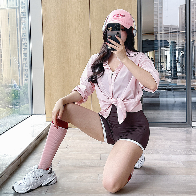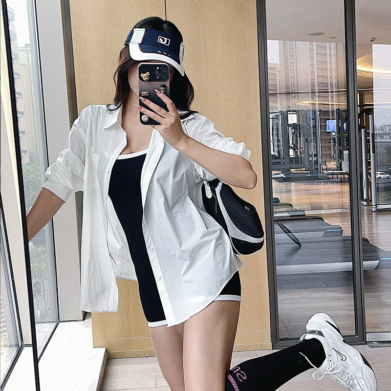 奔跑吧卡卡宽松防晒长袖衬衫女显瘦外搭休闲健身百搭上衣跑步春夏