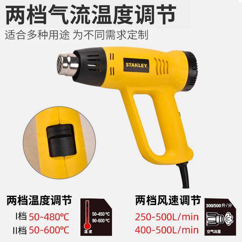 史丹利热风枪贴膜烤枪汽车专用大功率调温电动热吹风机热缩烘枪