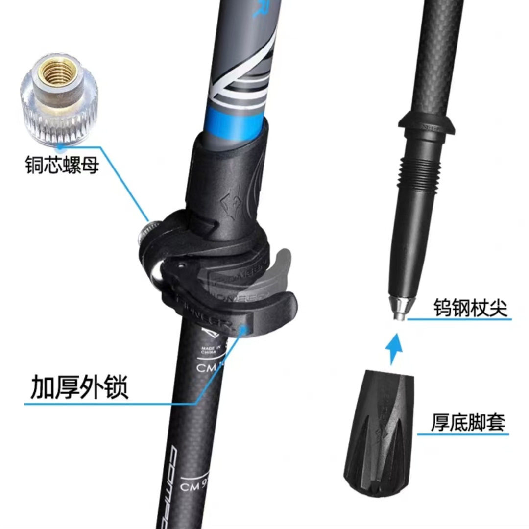 Pioneer/开拓者碳纤维登山杖 3节外锁手杖户外徒步旅行新大陆10系