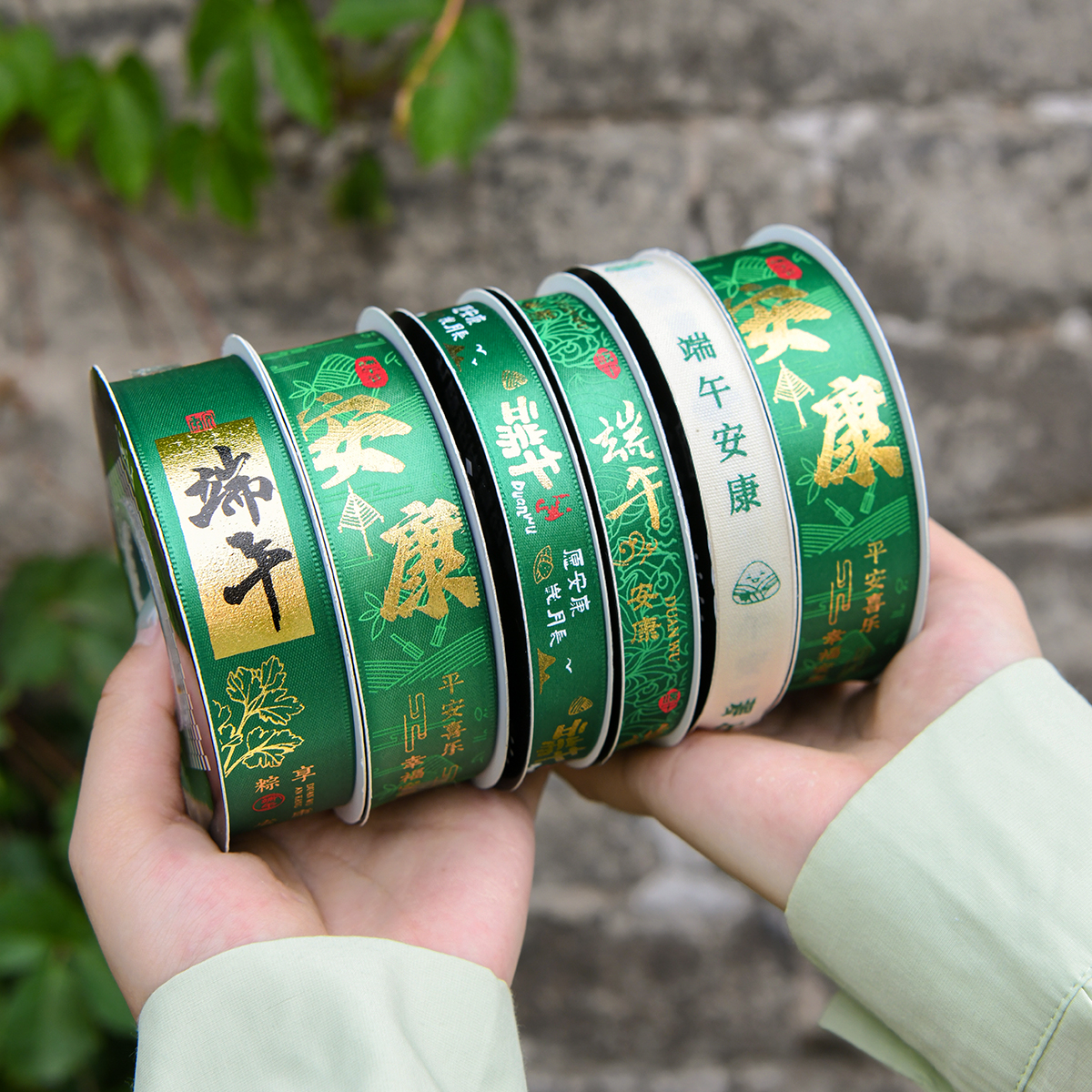 福气安康端午节粽子盒包装高档丝带礼品绑带装饰缎带绿色花束彩带