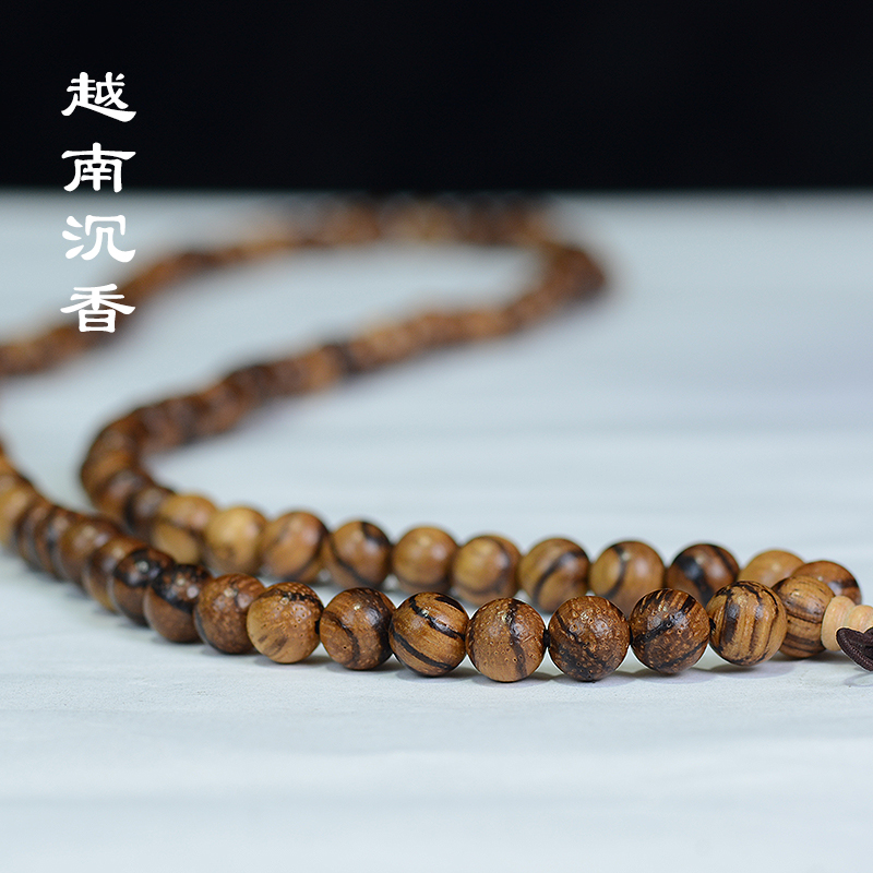越南白沙沉手链108颗念珠香木手串女士毛衣链木质文玩地摊佛珠