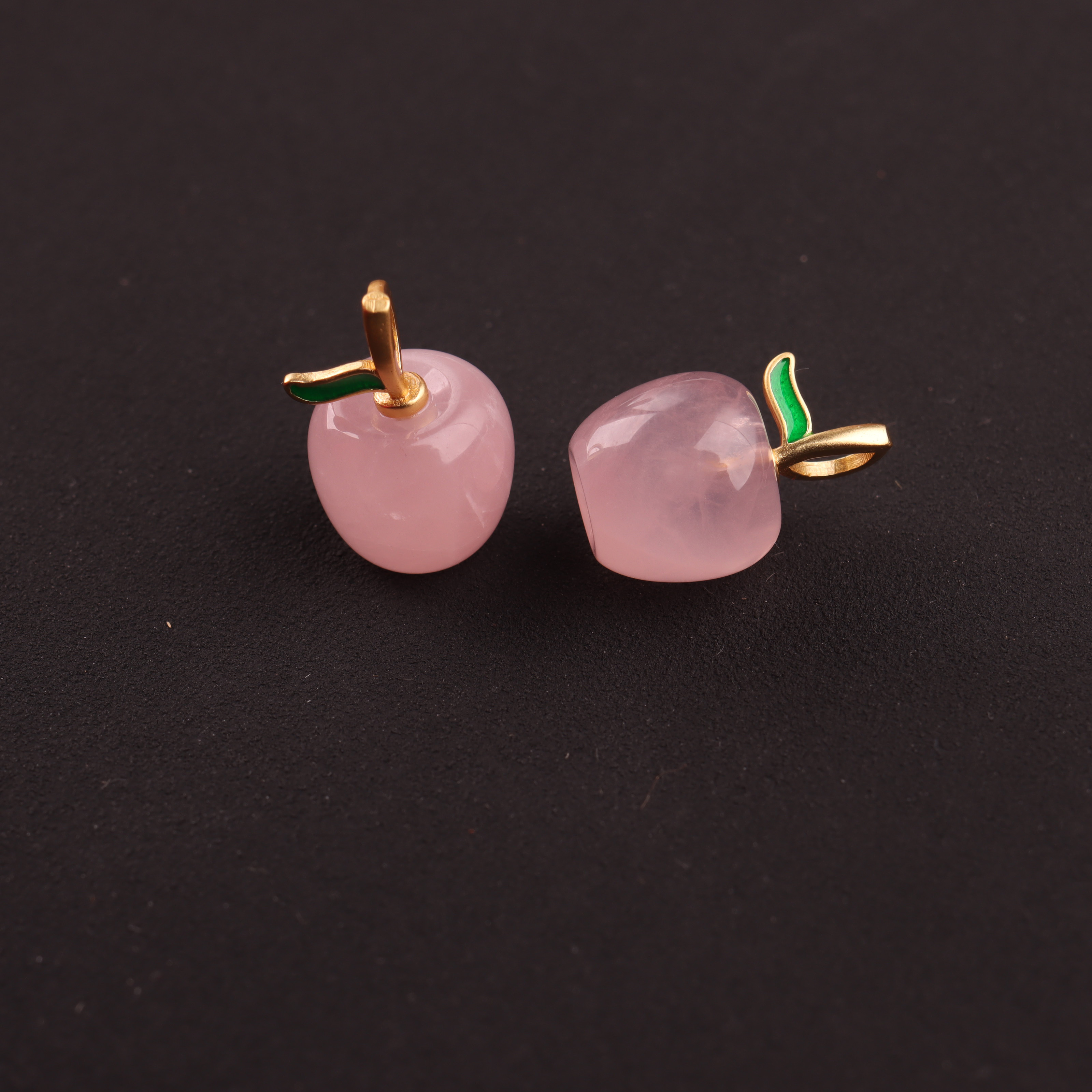 天然粉晶 爆款挂件小苹果滴溜吊坠 手链 项链手工diy饰品配饰材料