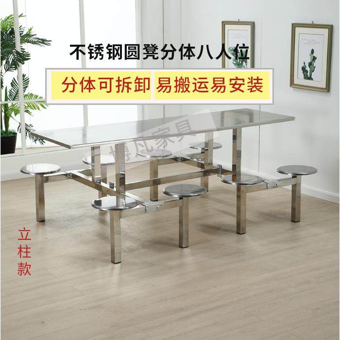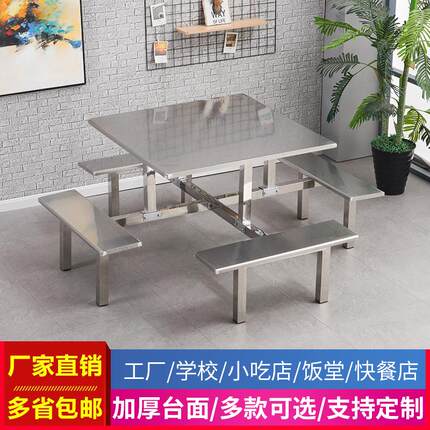 学校食堂不锈钢餐k桌椅4人6人8人位工厂员工饭堂连身快餐桌椅组合