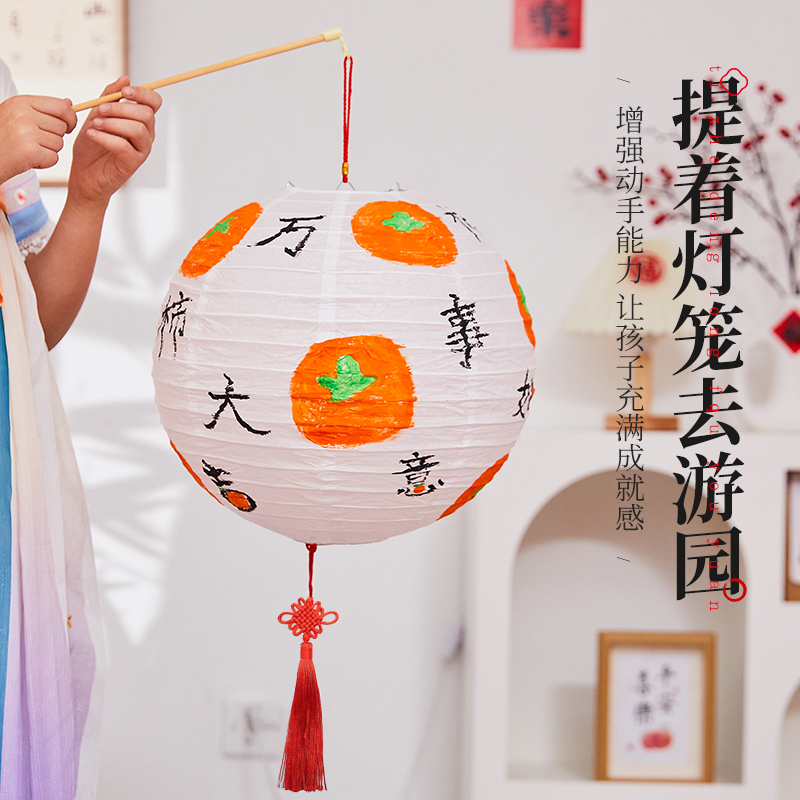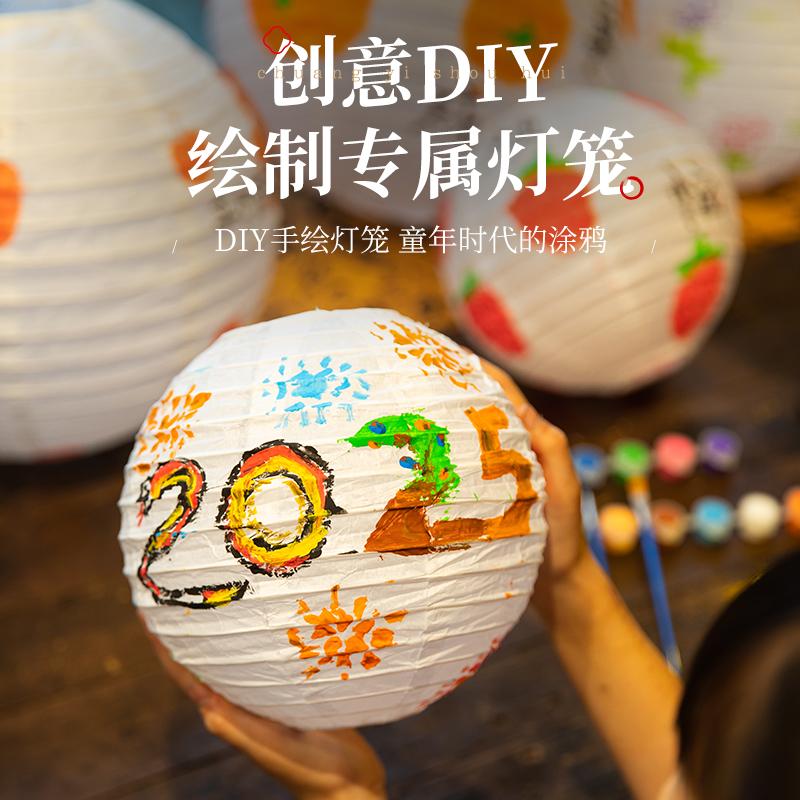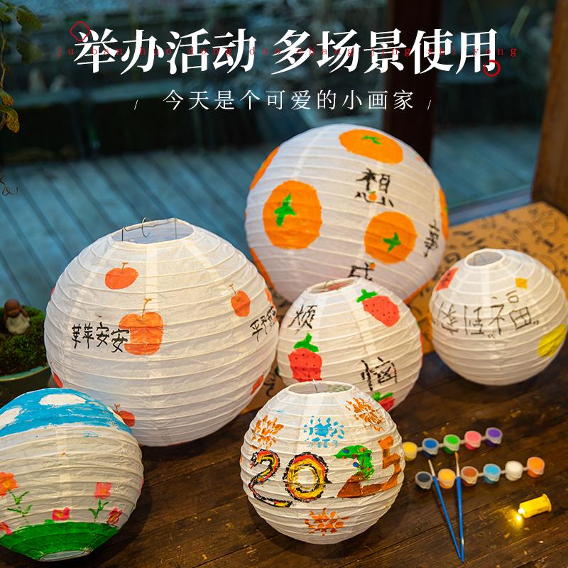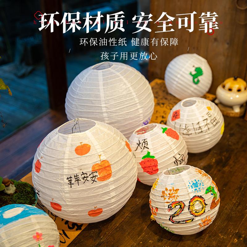中秋节创意手绘白色古风小灯笼幼儿园儿童涂鸦绘画diy手工材料包