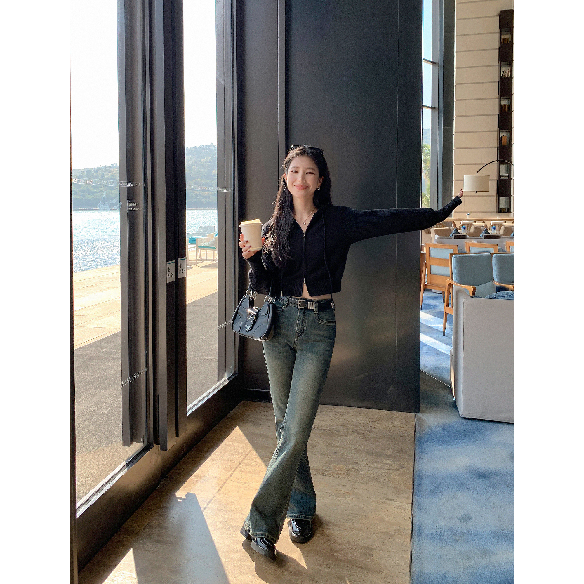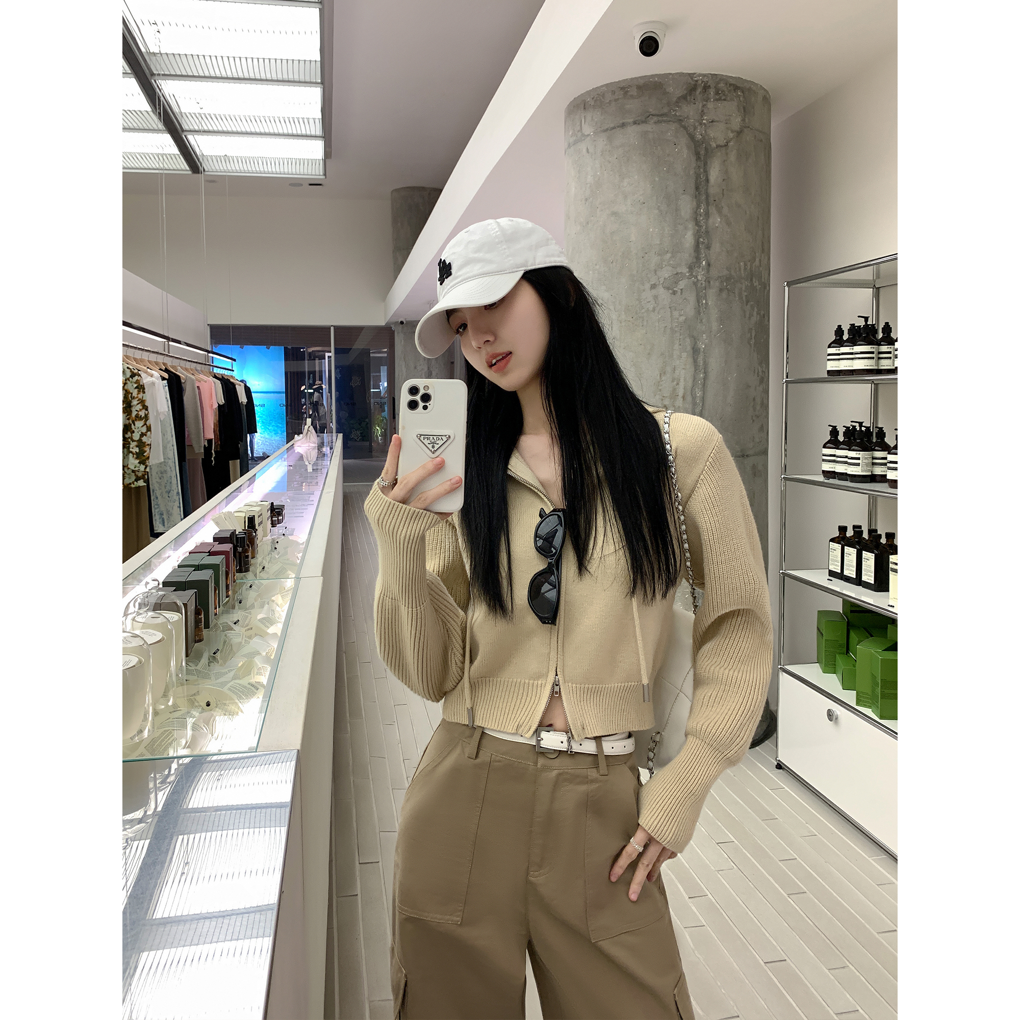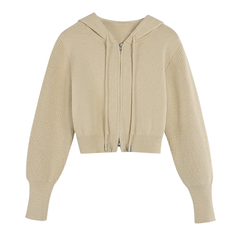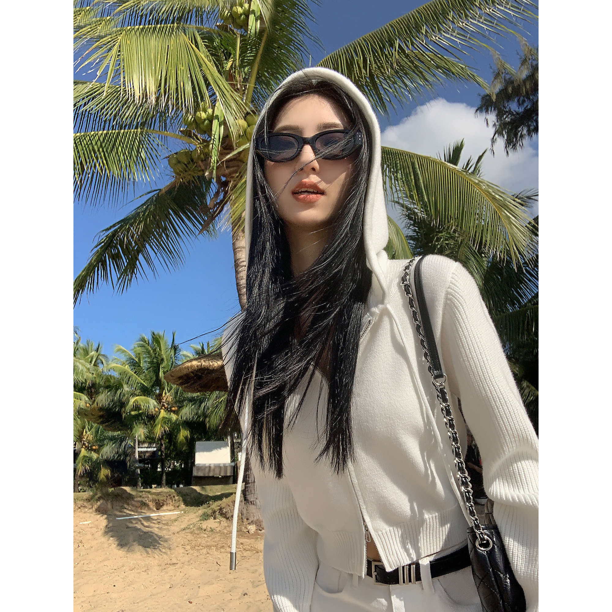 MULVAN白色连帽毛衣开衫女秋季新款短款宽松休闲百搭针织上衣