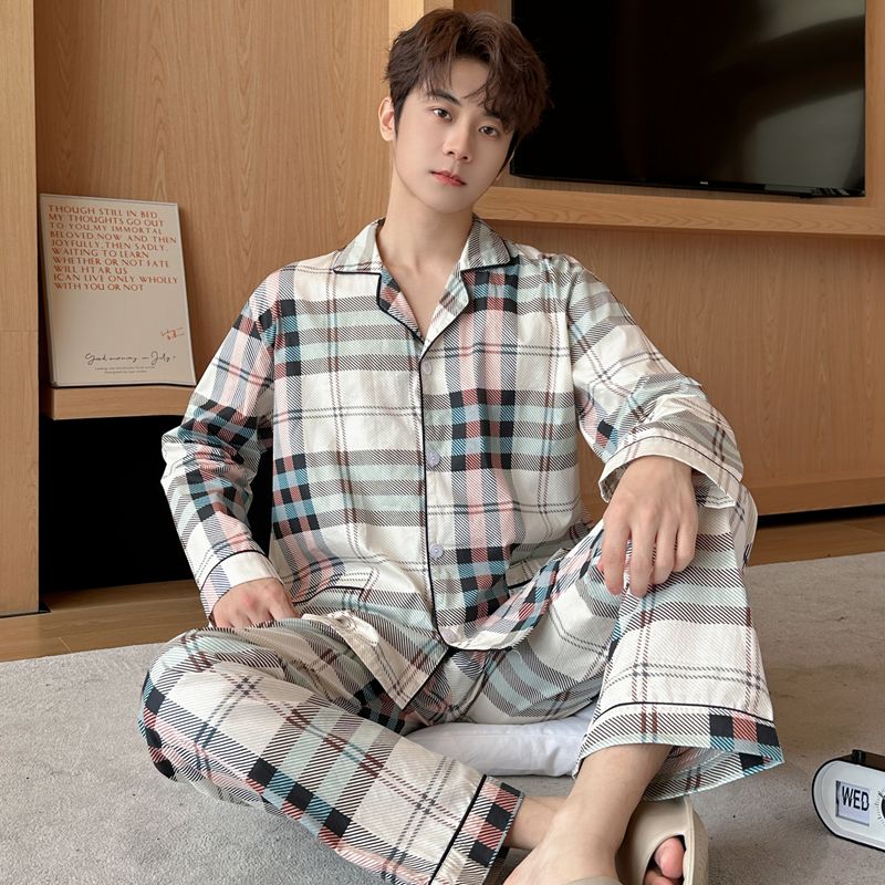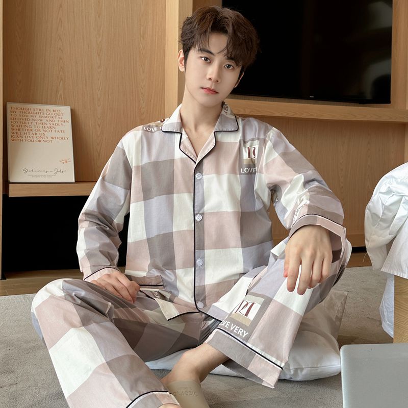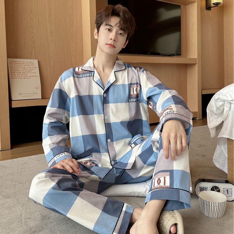 春秋季睡衣男士新款纯棉布长袖青少年大码梭织全棉夏季家居服套装