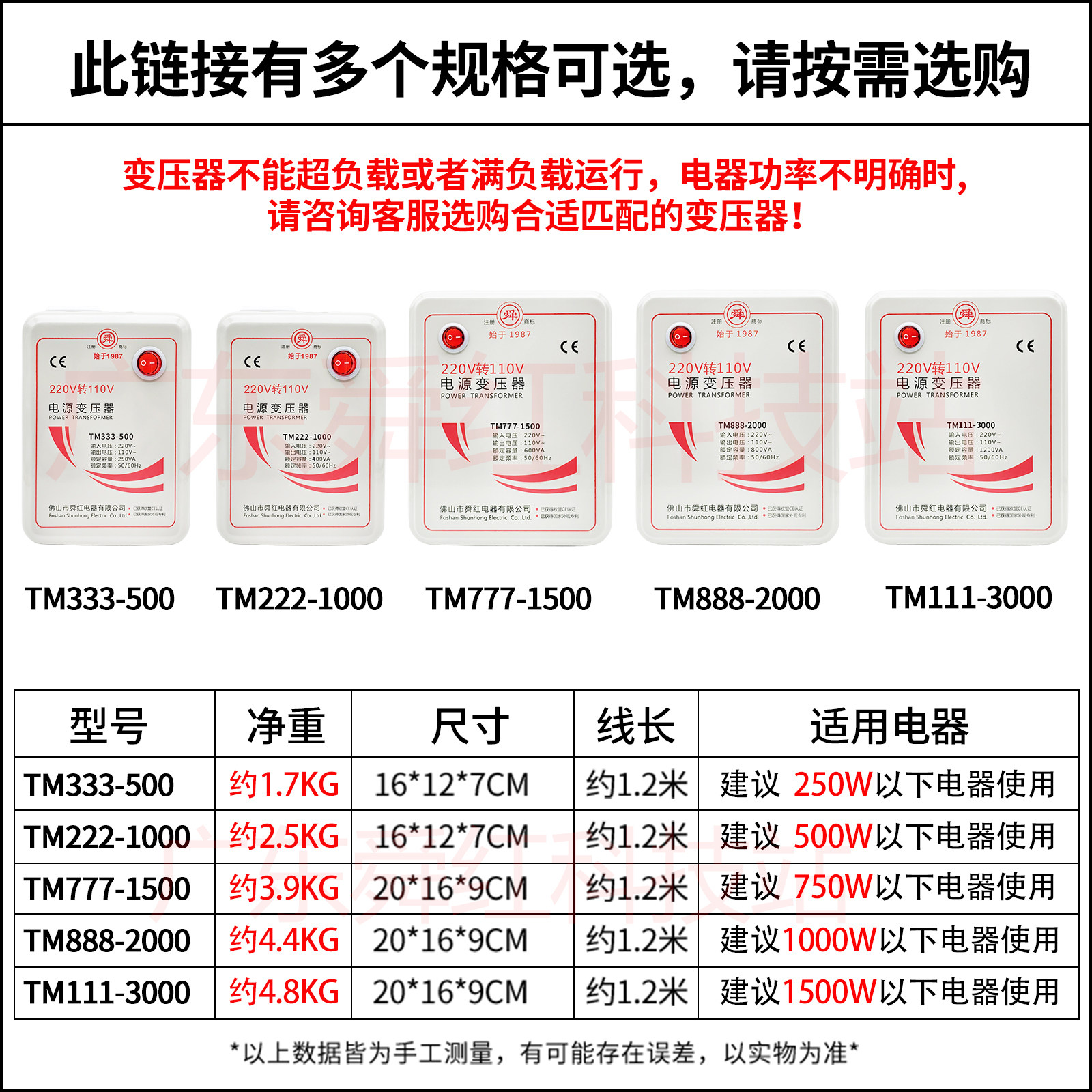 原装舜红变压器220V转110V100V日本电源电压转换器日本110V转220V