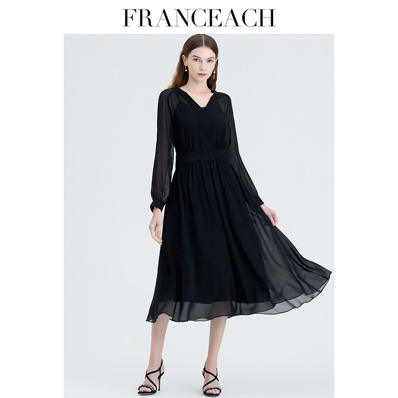 法涵意弛法式真丝连衣裙两件套