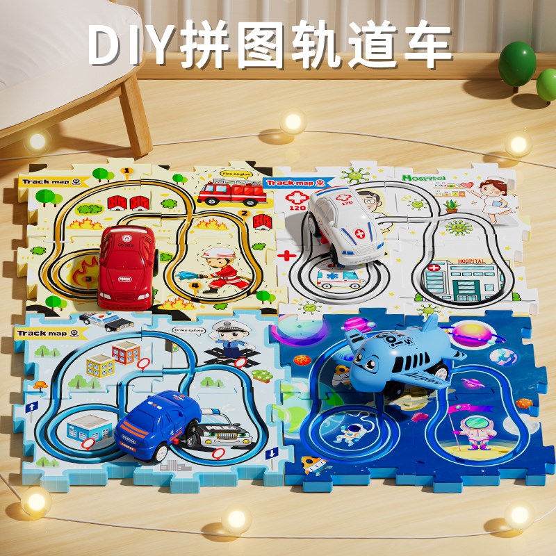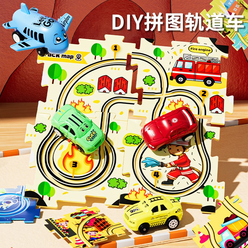 速发儿童益智轨道汽车拼图轨道车电动滑行小火车岁宝宝2男孩4玩具