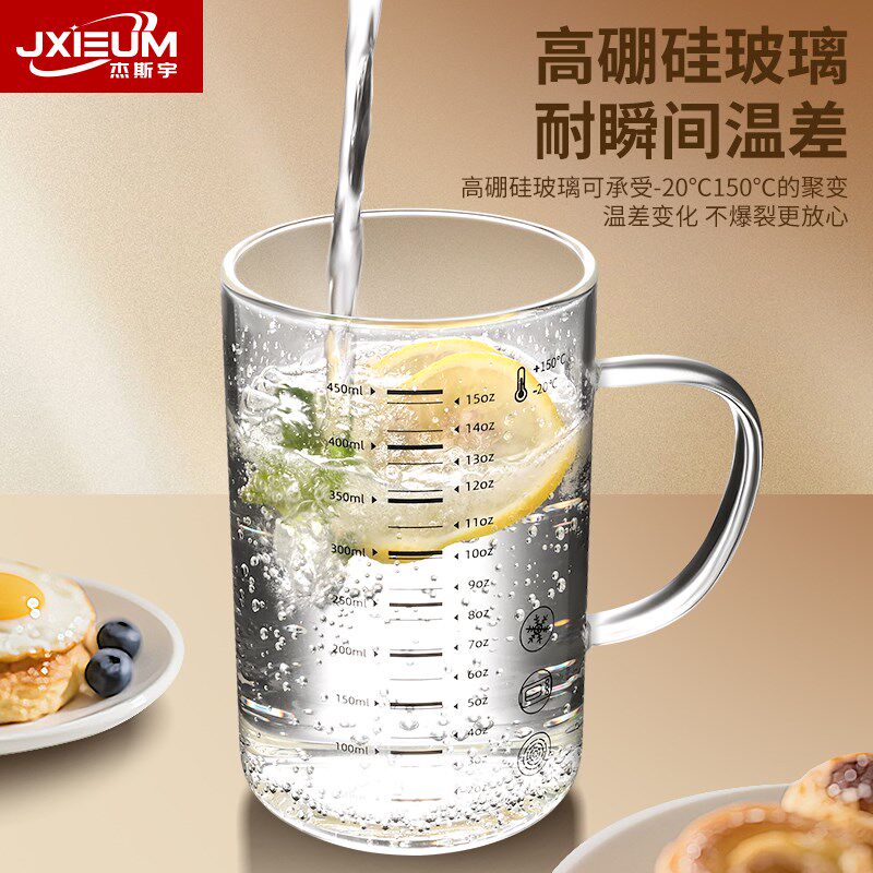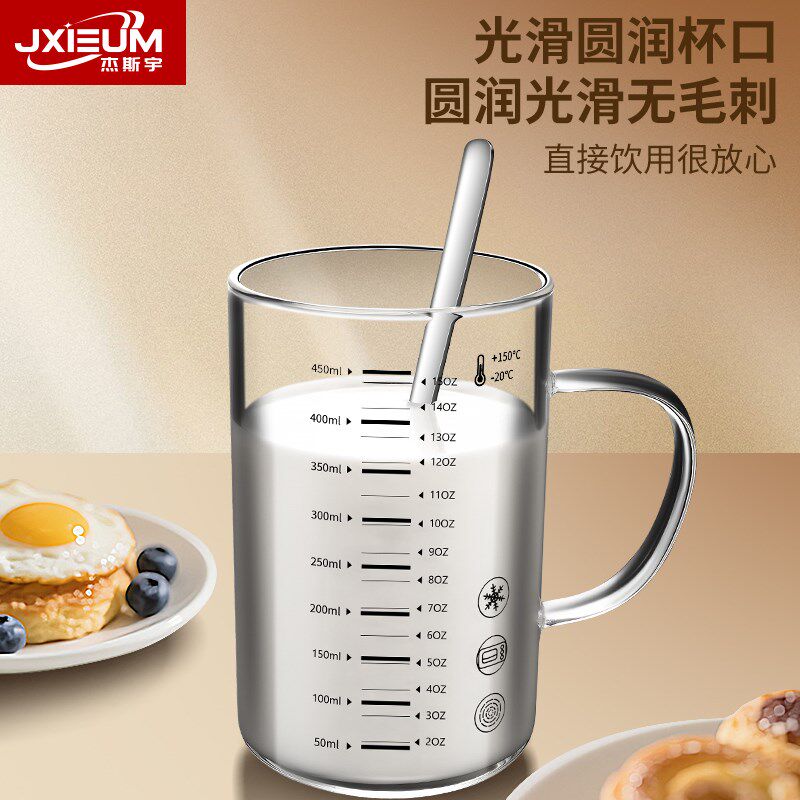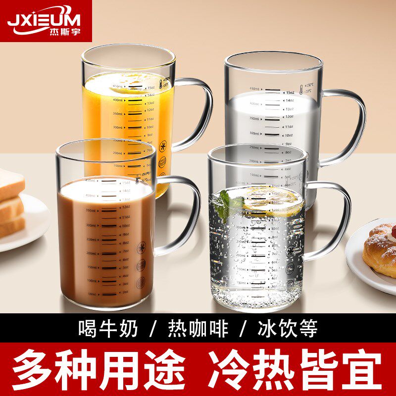 家用玻璃牛奶刻度水杯可微波耐高温学生豆浆早餐杯子上班族咖啡杯