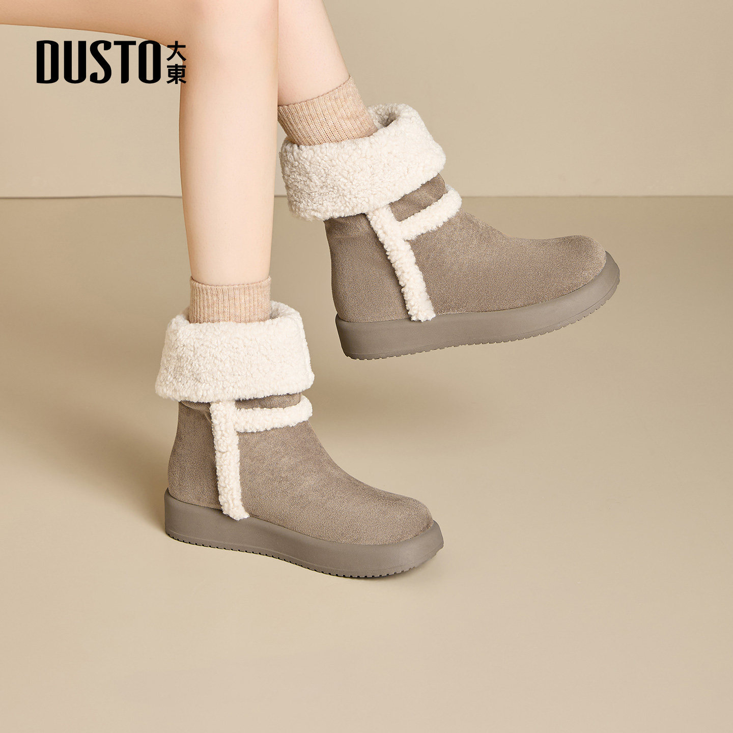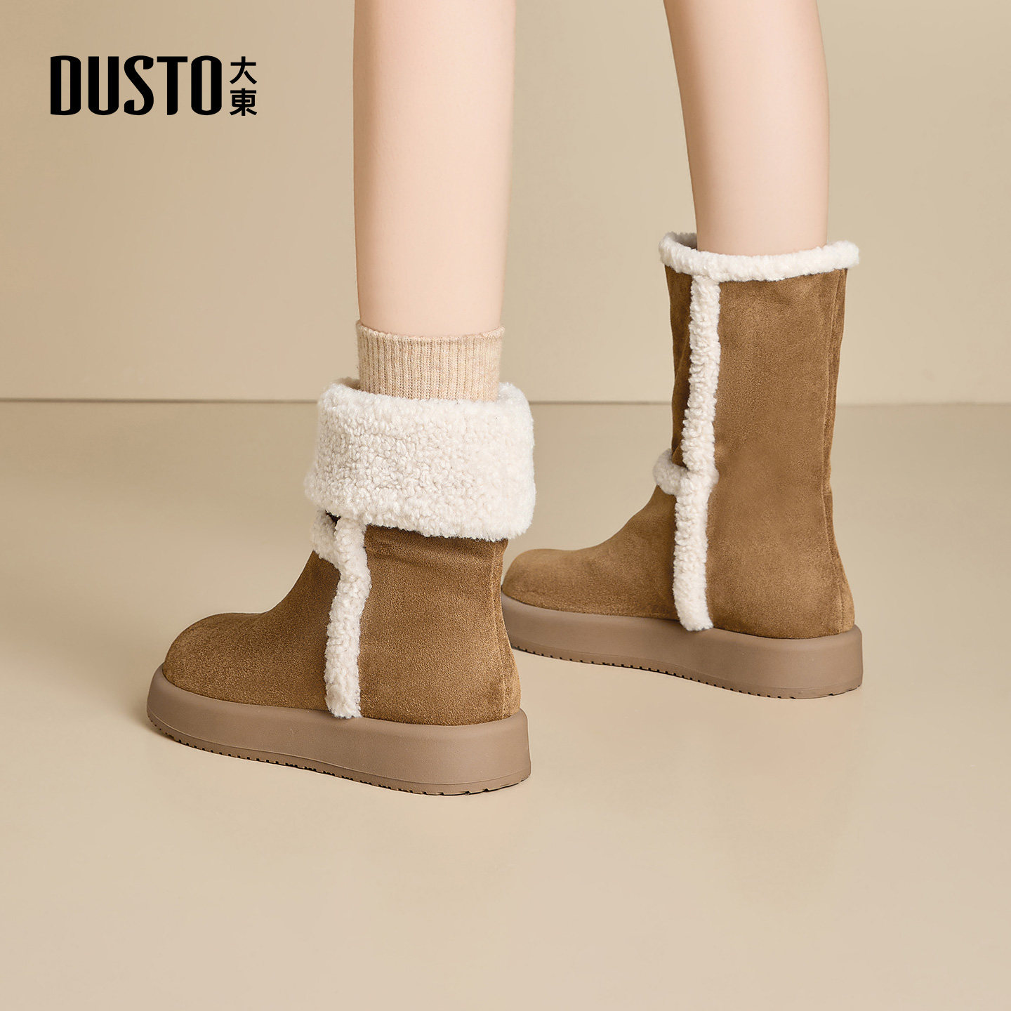 大东官方正品厚底雪地靴加绒保暖