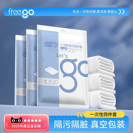 freego旅行一次性床单被罩枕套四件套旅游酒店加厚双人床上用品