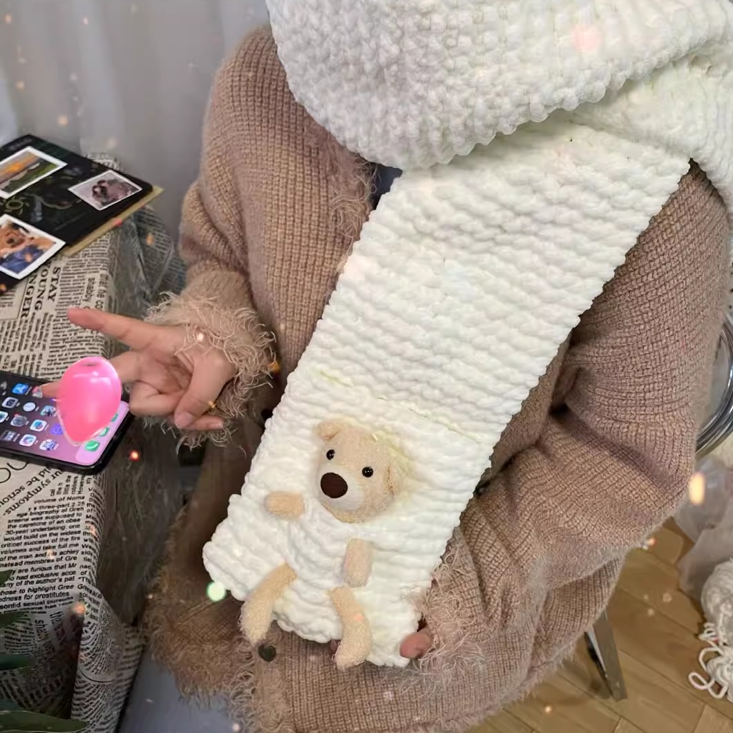小熊口袋围巾手工diy毛线手编织神器围脖礼物送男女朋友冬季新款