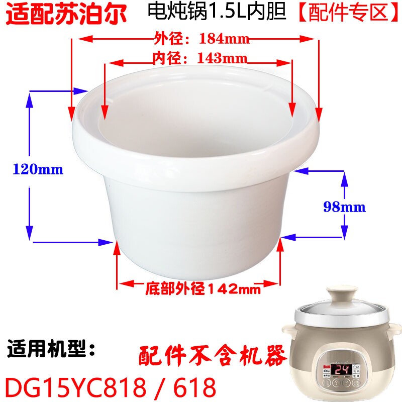 适配苏泊尔DG15YC618电炖锅1.5L内胆玻璃盖15YC818配件15YC18