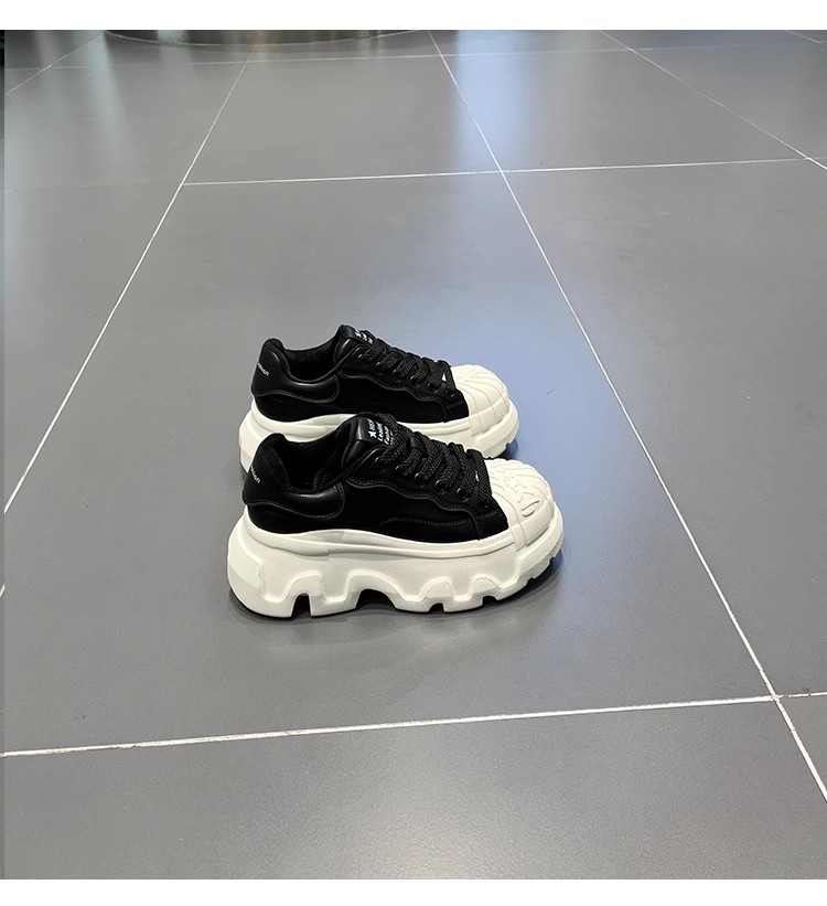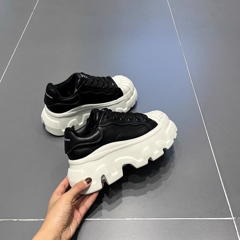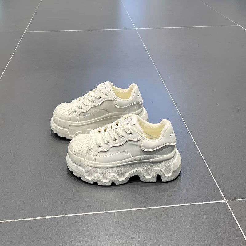 小个子厚底增高真皮贝壳头松糕鞋女2023冬新款7cm休闲板鞋小白鞋