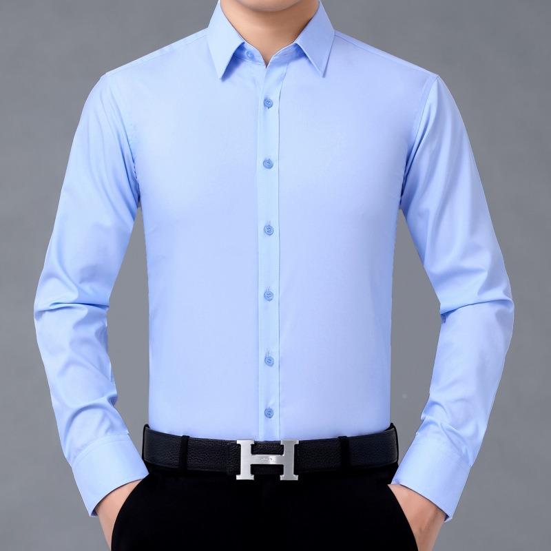 582-P春秋新款男装衬桑蚕丝士抗皱长袖衬衫男中青年商务休打闲底
