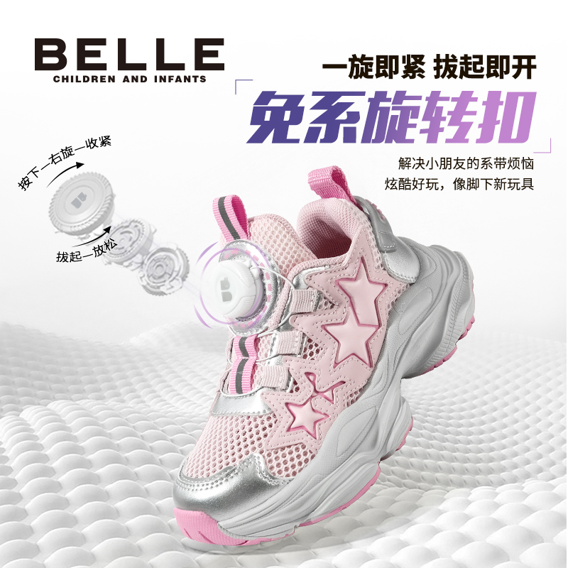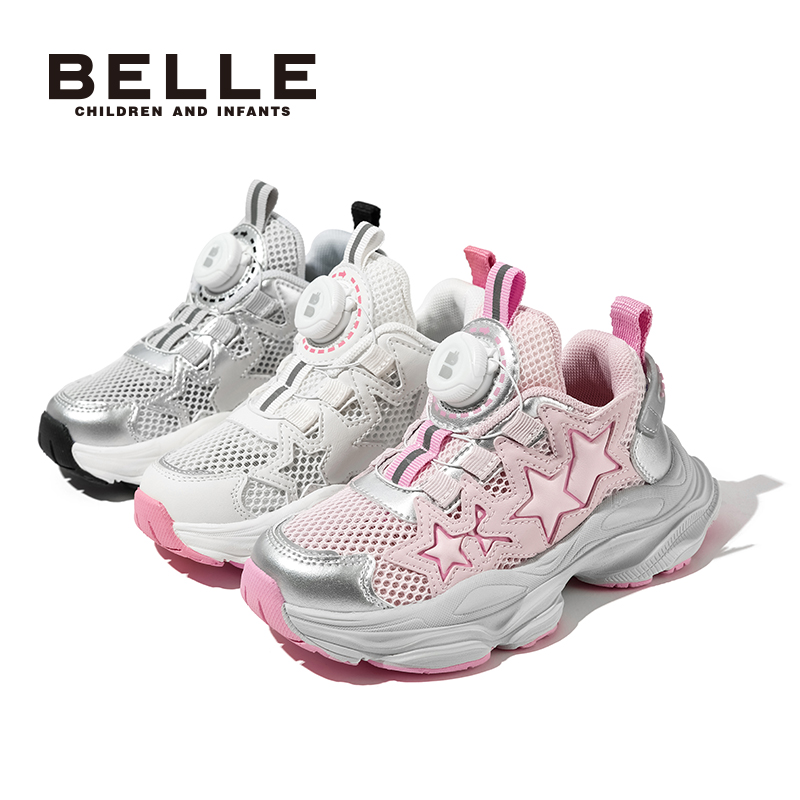 百丽童鞋女童透气老爹鞋夏季舒适软底儿童运动鞋小星星时尚网面鞋