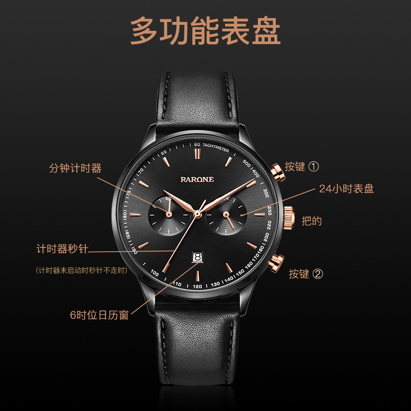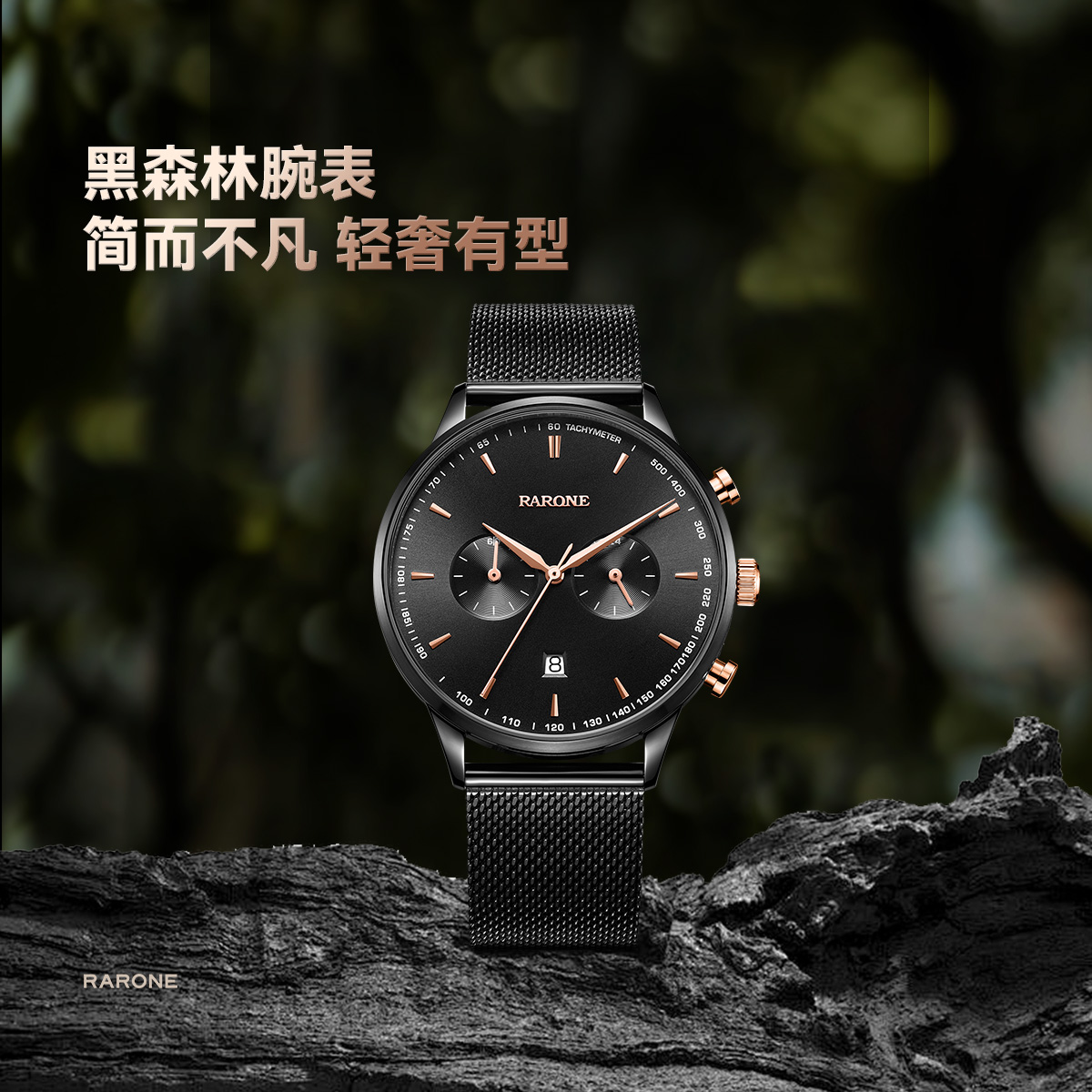 Rarone雷诺黑森林手表男款石英腕表日历休闲男士学生学生礼物