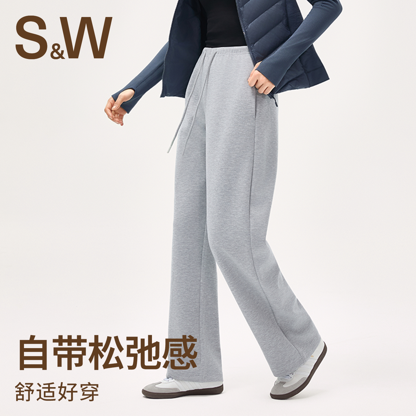 SW速惟灰色直筒休闲长裤女宽松阔腿香蕉裤垂感运动卫裤子新款加绒