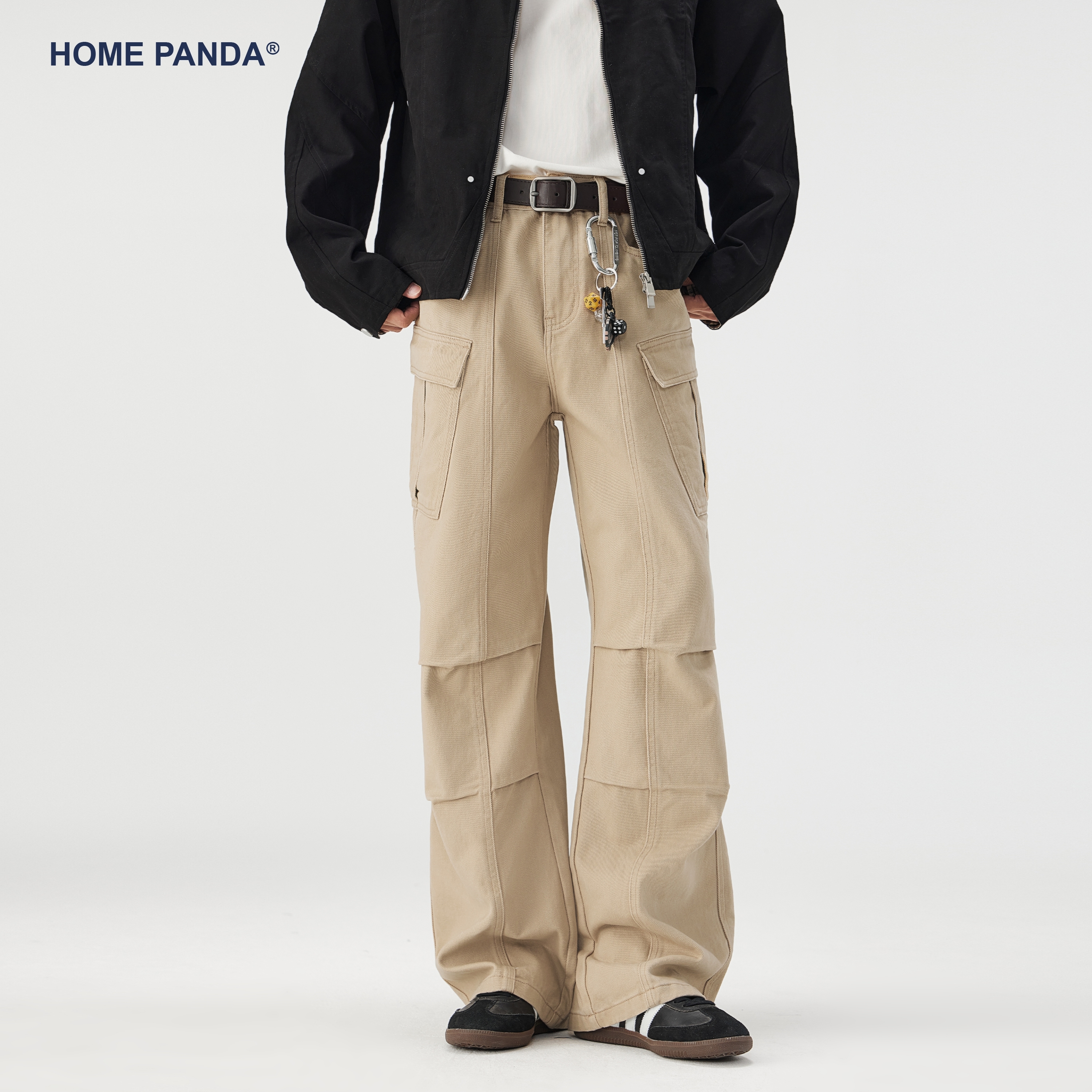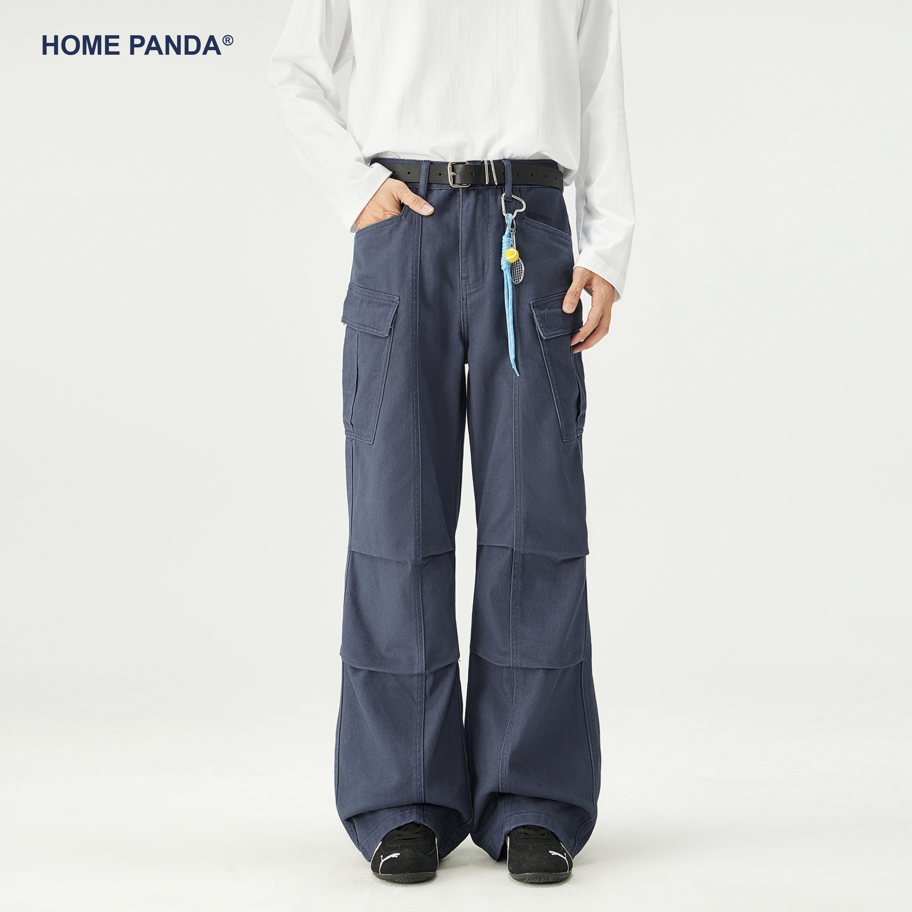 HomePanda纯棉多口袋工装牛仔裤男秋季美式复古褶皱伞兵A字裤子潮