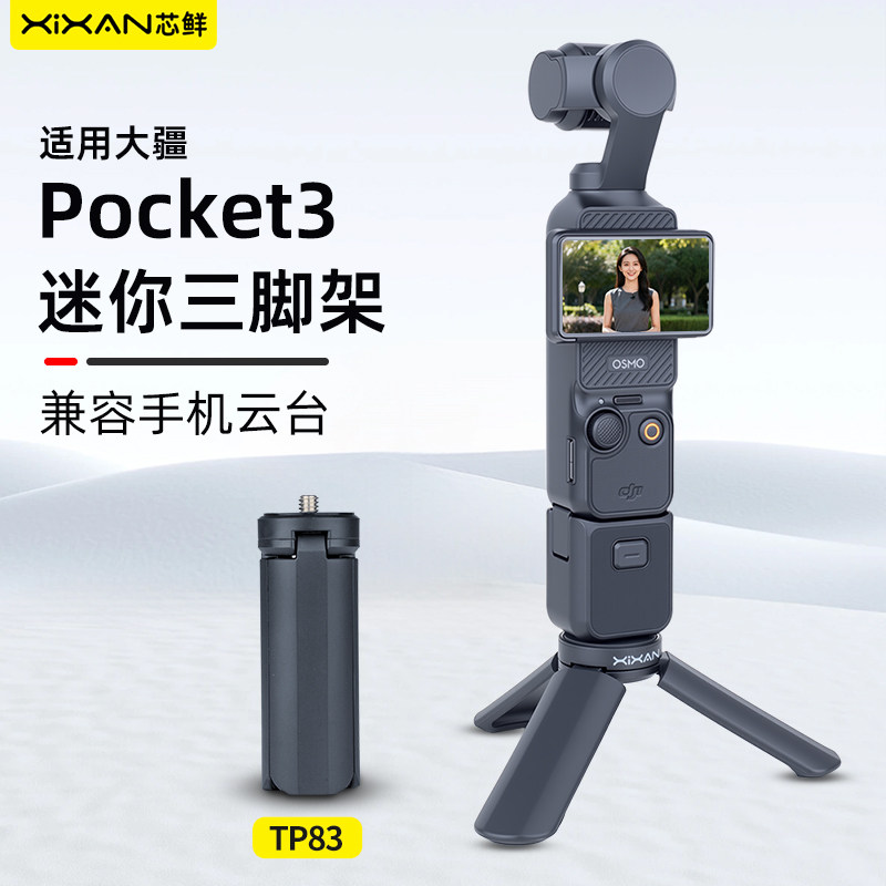 芯鲜TP97手持稳定器手柄三脚架迷你便携适用大疆Pocket3佳能单反索尼微单相机桌面手机云台金属视频三角支架